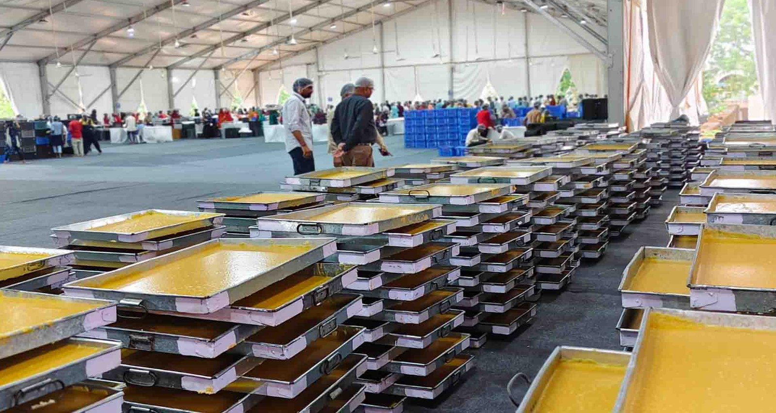 અંબાજી મહામેળામાં માઁ અંબેના મનભાવન મોહનથાળ પ્રસાદનું અવિરત વિતરણ