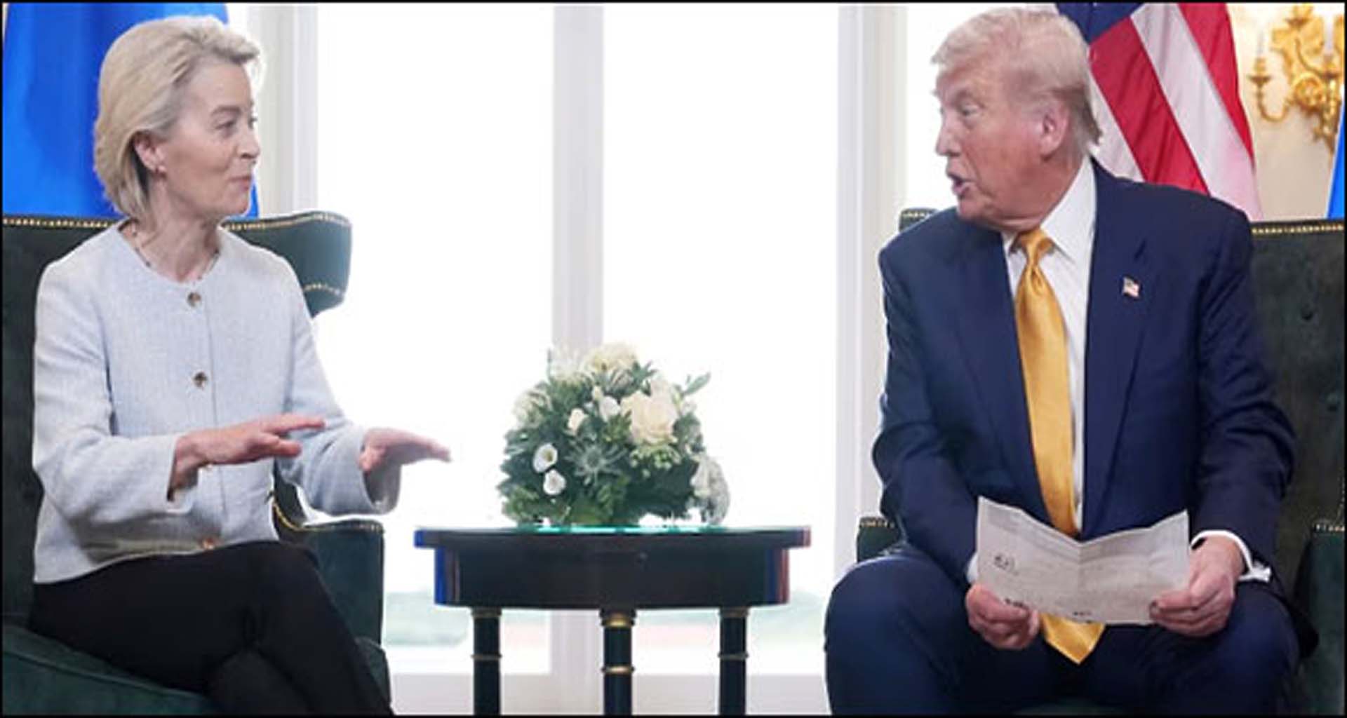 અમેરિકાના રાષ્ટ્રપતિ ડોનાલ્ડ ટ્રમ્પ અને યુરોપિયન યુનિયન (ઈયુ) વચ્ચે એક મોટા અને ઐતિહાસિક વેપાર કરારની જાહેરાત કરવામાં આવી છે. ટ્રમ્પે આ કરારને 'અત્યાર સુધીનો સૌથી મોટો વેપાર કરાર' ગણાવ્યો છે, જે બંને પક્ષો માટે ફાયદાકારક સાબિત થશે.ટ્રમ્પે આ પ્રસંગે કહ્યું કે આ કરાર હેઠળ, બધા દેશોના બજારો ખુલ્લા રહેશે અને યુરોપિયન યુનિયન પર તમામ ક્ષેત્રોમાં ૧૫ ટકા ટેરિફ લાદવામાં આવશે. આ સાથે, ઈયુ અમેરિકા પાસેથી લશ્કરી સાધનોની ખરીદી પણ વધારશે. ઊર્જા ક્ષેત્રમાં પણ, યુરોપિયન યુનિયન અમેરિકા પાસેથી લગભગ ઼૧૫૦ બિલિયન ડોલરની ઊર્જા ખરીદશે, જે બંને પક્ષો વચ્ચે આર્થિક સહયોગને મજબૂત બનાવશે.