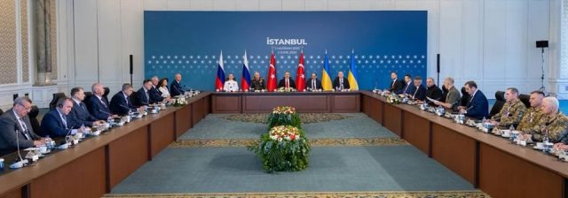 તુર્કીના વિદેશ પ્રધાન હકાન ફિદાને ઇસ્તંબુલના સિરાગન પેલેસમાં શાંતિ વાટાઘાટોની અધ્યક્ષતા કરી હતી, જે ઓટ્ટોમન સામ્રાજ્યનું નિવાસસ્થાન છે.