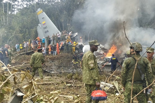 કોલંબિયાની દક્ષિણ સરહદ ઇક્વાડોર અને પેરુ નજીક પ્યુઅર્ટો લેગુઇઝામોથી ઉડાન ભર્યા પછી તરત જ સી-130 હર્ક્યુલસ વિમાન નીચે પડી ગયું હતું, જેના કારણે જંગલમાં સળગતો કાટમાળ વિખેરાઈ ગયો હતો.