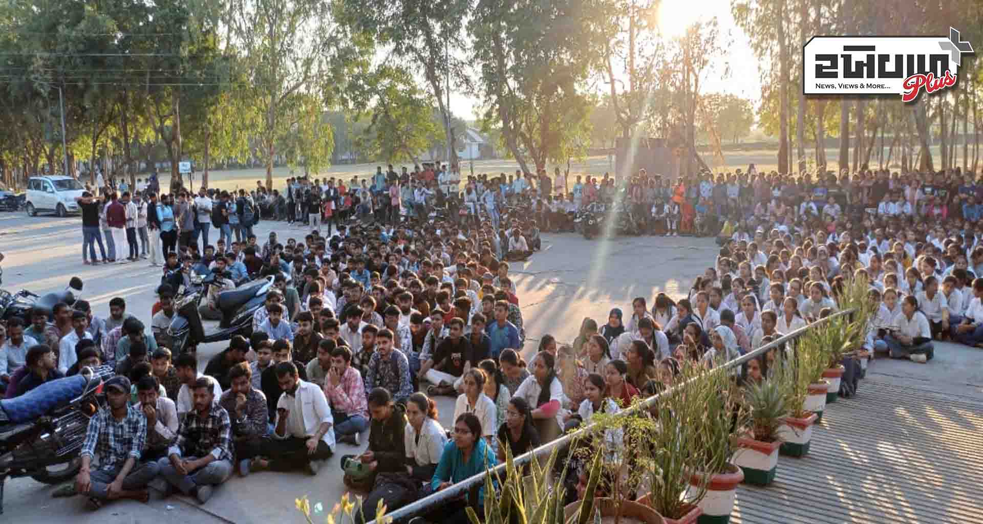 વિરોધમાં કોલેજના વિદ્યાર્થીઓની સાથે એબીવીપી સંગઠનનો સાથ સહકાર મળતા કોલેજ કેમ્પસમાં મોટી સંખ્યામાં વિદ્યાર્થીઓનો જમાવડો થઈ ગયો હતો. સમગ્ર ઘટનાના પગલે વાતાવરણ તંગ થતું જોઈ કોલેજ પ્રસાશન તરફથી તાકીદે પોલીસ બોલાવવાની ફરજ પડી હતી. મૃતક ભાવિ ડોકટર ઉર્વશીની આત્માની શાંતિ માટે ઉપસ્થિત તમામ વિદ્યાર્થીઓએ રામધૂન કરી હતી.જ્યાં સુધી કાર્યવાહી નહીં થાય ત્યાં સુધી હડતાળ ચાલુ રાખવાની ચીમકી ઉચ્ચારીને પીએમ માટે સરકારી દવાખાને લઈ જવાયેલ લાશ ના સ્વીકારવાની લડત આપવાની પણ ચીમકી ઉચ્ચારી હતી. મૃતક ઉર્વશીના વાલી વારસદાર આવી જતા જ્યાં સુધી પોલીસ રિપોર્ટ ન આવે ત્યાં સુધી વિદ્યાર્થીઓએ દીકરીની લાશ ન સ્વીકારવા માટે આહવાન કર્યું હતું