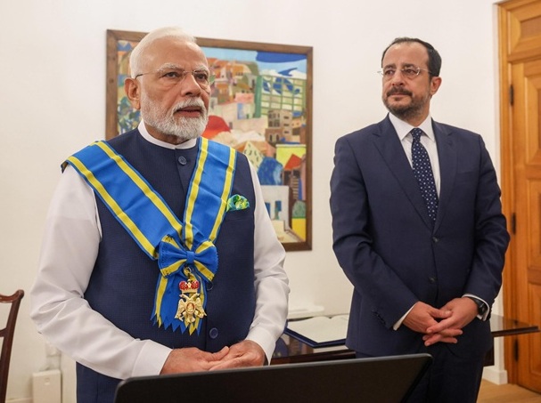 સાયપ્રસના રાષ્ટ્રપતિ નિકોસ ક્રિસ્ટોડોલિડેસે પીએમ મોદીને સાયપ્રસના સર્વોચ્ચ સન્માન ગ્રાન્ડ ક્રોસ ઑફ ધ ઑર્ડર ઑફ મેકરિયોસ IIIથી સન્માનિત કર્યા