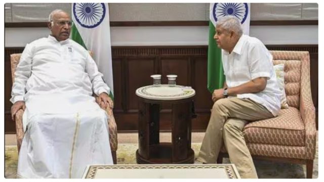 ખડગેએ પાછળથી ટ્વિટ કર્યું કે તેમની ધનખર સાથે “ફળદાયી વાતચીત” થઈ છે.