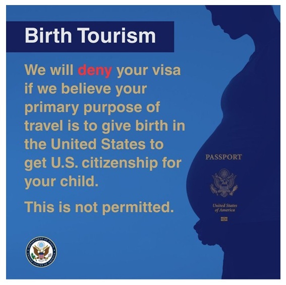 આ સંદેશ સાથેની તસવીરમાં કેપ્શન હતું, “જો અમને લાગે કે તમારા મુસાફરીનો મુખ્ય હેતુ તમારા બાળક માટે યુએસ નાગરિકતા મેળવવા માટે યુનાઇટેડ સ્ટેટ્સમાં જન્મ આપવાનો છે તો અમે તમારા વિઝા નકારી કાઢીશું. આ પરવાનગી નથી.”