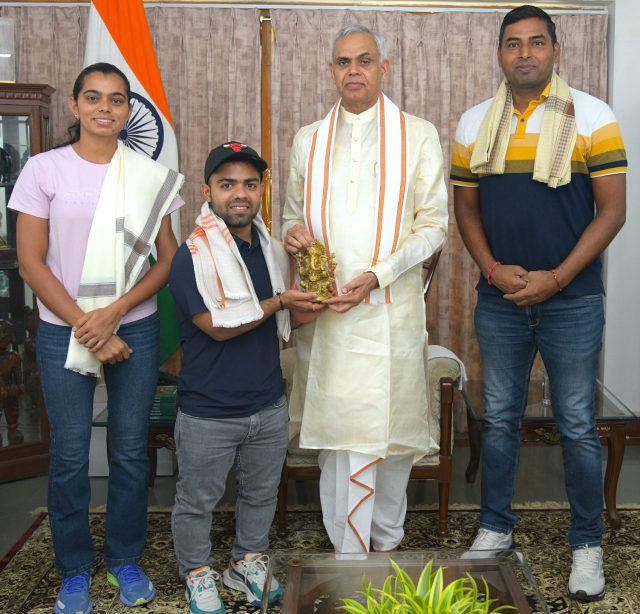 રાજ્યપાલ શ્રી આચાર્ય દેવવ્રતજીની પેરિસ પેરા ઓલિમ્પિક-2024ના જેવેલિન થ્રો ગોલ્ડ મેડલ વિજેતા નવદીપ સિંહે રાજભવન ખાતે શુભેચ્છા મુલાકાત લીધી હતી.