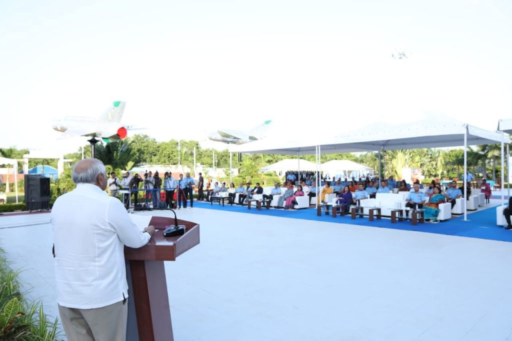 સાઉથ વેસ્ટર્ન એર કમાન્ડના એર ઓફિસર કમાંન્ડિંગ ઈન ચીફ એર માર્શલ શ્રી નગેશ કપૂરે સ્વાગત પ્રવચનથી મુખ્યમંત્રીશ્રીને આવકાર્યા હતા અને એરફોર્સ વર્ષગાંઠ ઉજવણીની ભૂમિકા આપી હતી.