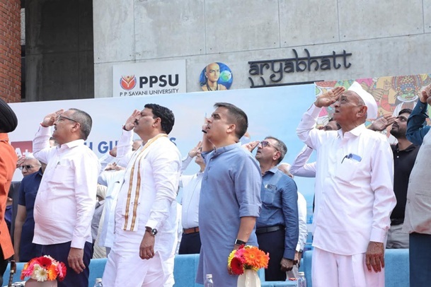 સુરત જિલ્લાના કોસંબા વિસ્તારમાં આવેલી પ્રસિદ્ધ પીપી સવાણી યુનિવર્સિટી ખાતે દક્ષિણ ગુજરાતના સૌથી ઊંચા રાષ્ટ્રધ્વજનું લોકાર્પણ કરવામાં આવ્યું છે. પીપી સવાણી યુનિવર્સિટીના પ્રાંગણમાં 45 મીટર એટલે કે અંદાજે 147 ફૂટની ઊંચાઈ ધરાવતો ગગનચુંબી તિરંગો લહેરાવવામાં આવ્યો હતો.