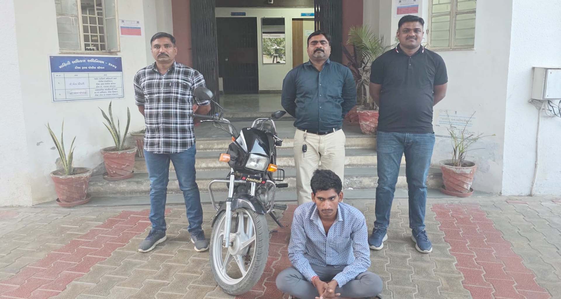 જિલ્લામાં મિલકત સંબંધી ગુનાઓ અટકાવવા અને વણઉકેલાયેલા ગુનાઓ શોધી કાઢવા માટે પોલીસ અધિક્ષક પ્રશાંત સુંબેની સૂચના અને એલસીબી પી.આઈ. એ.વી. દેસાઈના માર્ગદર્શન હેઠળ પોલીસની ટીમો સતત કાર્યરત છે. તે અંતર્ગત ડીસા રૂરલ પોલીસ સ્ટેશન વિસ્તારના વિઠોદર ગામ પાસેથી પાલનપુર એલસીબીએ ચોરીના બાઈક સાથે એક આરોપીને ઝડપી પાડ્યો છે.