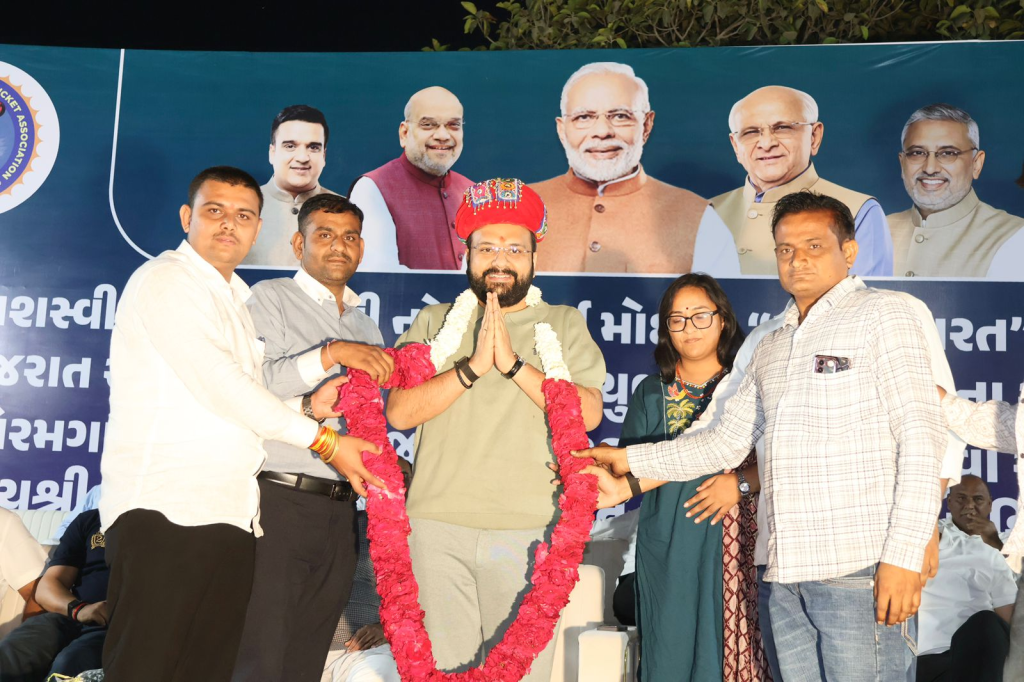વિરમગામમાં દેશના યશસ્વી પ્રધાનમંત્રી શ્રી નરેન્દ્રભાઈ મોદીના “ખેલો ભારત” અભિયાનને ગ્રામીણ સ્તરે વધુ મજબૂતી આપવાના હેતુથી આયોજિત સામાજિક એકતા ક્રિકેટ ટુર્નામેન્ટનો ભવ્ય પ્રારંભ કરવામાં આવ્યો છે. ગુજરાત સરકારના રમત-ગમત અને યુવક સેવા વિભાગના સહયોગથી તથા વિરમગામના ધારાસભ્ય શ્રી હાર્દિક પટેલના આયોજન હેઠળ શરૂ થયેલી આ ટુર્નામેન્ટનું ઉદ્ઘાટન ગુજરાત સરકારના રાજ્યમંત્રી શ્રી કૌશિકભાઈ વેકરીયા અને ભારતીય જનતા પાર્ટી યુવા મોરચાના પ્રદેશ પ્રમુખ તથા વડોદરાના સાંસદ શ્રી હેમાંગભાઈ જોશીના હસ્તે વિરમગામ ખાતે કરવામાં આવ્યું હતું.