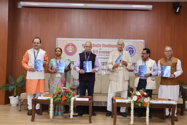 ગુજરાત કેન્દ્રીય વિશ્વવિદ્યાલય અને ભારતીય હિન્દી પ્રાધ્યાપક પરિષદના સંયુક્ત તત્વાવધાનમાં “ભારતીય સાહિત્ય: ભાવ એક, ભાષાઓ અનેક” વિષયક બે દિવસીય રાષ્ટ્રીય સંગોષ્ઠી અને દ્વિતીય પ્રાધ્યાપક સંમેલનનું ઉદ્ઘાટન વિશ્વવિદ્યાલયના કુલપતિ પ્રો. રમાશંકર દૂબે, પદ્મશ્રી પ્રો. રઘુવીર ચૌધરી, પ્રો. વિનોદ કુમાર મિશ્ર, પ્રો. રામ પ્રકાશ, પ્રો. ટી. જે. રેખા રાની અને પ્રો. સંજીવ કુમાર દુબે દ્વારા દીપ પ્રજ્વલનથી કરવામાં આવ્યું. ભારતીય હિન્દી પ્રાધ્યાપક પરિષદની તરફથી ગુજરાત કેન્દ્રીય વિશ્વવિદ્યાલયના કુલપતિ પ્રો. રમાશંકર દૂબેનું ‘સારસ્વત સન્માન’ કરવામાં આવ્યું. પ્રો. સંજીવ કુમાર દુબેએ સ્વાગત વક્તવ્યમાં ‘ભારતીય હિન્દી પ્રાધ્યાપક પરિષદ’ના કાર્યો અને મહત્વો પર પ્રકાશ પાડ્યો. પ્રો. ટી. જે. રેખા રાનીએ અનુવાદના મહત્વ પર વાત કરતાં તેને નવી ઊંચાઈઓ સુધી લઈ જવાની વાત કરી. પ્રો. રામપ્રકાશે ભારત, ભારતીયતા અને રાષ્ટ્રીયતાના સૂત્રોના ભાષાકીય સંબંધો પર પ્રકાશ પાડ્યો. પ્રો. વિનોદ કુમાર મિશ્રે સંસ્કૃતિ અને ભાષાના પરસ્પર સંબંધો પર વાત કરતાં, ભાવની એકતાને રેખાંકિત કરી હતી. મુખ્ય અતિથિ તરીકે બોલતાં જ્ઞાનપીઠ પુરસ્કારથી સન્માનિત પદ્મશ્રી પ્રો. રઘુવીર ચૌધરીએ કહ્યું કે રવીન્દ્ર અને ગાંધીના સપનાઓને ભારતના સાહિત્યકારોએ પોતાના સાહિત્યમાં પ્રસ્તુત કર્યા છે.