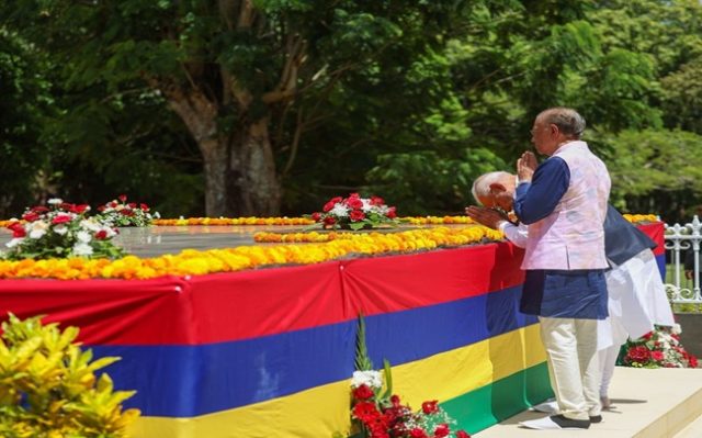 પ્રધાનમંત્રી શ્રી નરેન્દ્ર મોદીએ પેમ્પલમુસિસના સર શિવસાગર રામગુલામ બોટેનિક ગાર્ડન ખાતે સર શિવસાગર રામગુલામ અને અનિરુદ્ધ જગન્નાથની સમાધિઓ પર શ્રદ્ધાંજલિ અર્પણ કરી. પુષ્પાંજલિ અર્પણ કાર્યક્રમમાં પ્રધાનમંત્રી સાથે મોરેશિયસના પ્રધાનમંત્રી મહામહિમ નવીનચંદ્ર રામગુલામ પણ હાજર રહ્યા હતા. આ પ્રસંગે પ્રધાનમંત્રી મોદીએ મોરેશિયસની પ્રગતિ અને ભારત-મોરેશિયસ સંબંધો માટે મજબૂત પાયો બનાવવામાં બંને નેતાઓના કાયમી વારસાને યાદ કર્યો.