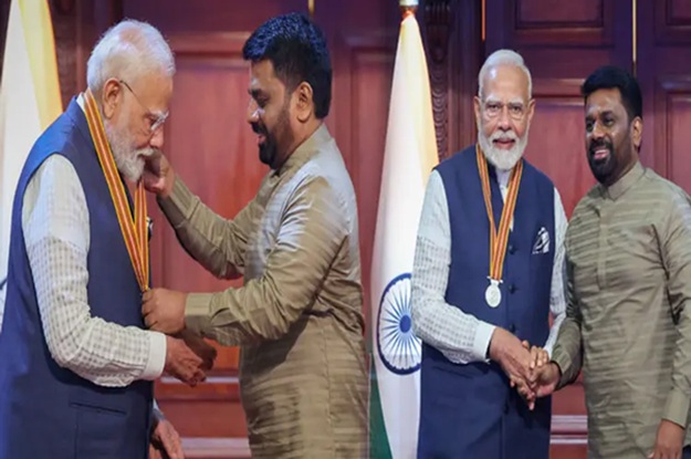 શ્રીલંકા પહોંચેલા વડાપ્રધાન મોદીનું ઉષ્માભર્યું સ્વાગત કરવામાં આવ્યું. શ્રીલંકાના પ્રમુખ અનુરા કુમારા દિસાનાયકે પીએમ મોદીને ‘મિત્ર વિભૂષણ પુરસ્કાર’થી સન્માનિત કર્યા છે. તેના પર પીએમ મોદીએ કહ્યું કે, ‘આ 140 કરોડ ભારતીયોનું સન્માન છે. શ્રીલંકા પ્રગતિના માર્ગ પર આગળ વધી રહ્યું છે. અમે મુશ્કેલ સમયમાં શ્રીલંકાની સાથે હતા. ‘શ્રીલંકા મિત્ર વિભૂષણ’ પુરસ્કાર મેળવવો એ ગર્વની વાત છે. શ્રીલંકા ફક્ત આપણો પાડોશી જ નહીં પણ આપણો મિત્ર પણ છે.’ પીએમ મોદીએ શ્રીલંકાના પ્રમુખ, સરકાર અને ત્યાંની જનતાનો આભાર માન્યો હતો.