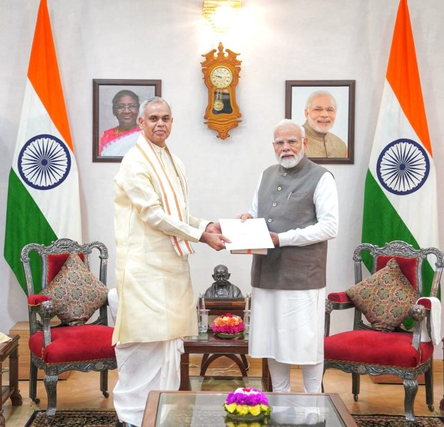 રાજ્યપાલ શ્રી આચાર્ય દેવવ્રતજીએ આ ઐતિહાસિક વિજયના નાયક તરીકે પ્રધાનમંત્રી શ્રી નરેન્દ્રભાઈ મોદીને ‘રાષ્ટ્ર મંજૂષા’ ગ્રંથની ભેટ આપી અને રાષ્ટ્ર નિર્માણમાં તેમના અવિસ્મરણીય યોગદાન માટે આદર અને કૃતજ્ઞતાની લાગણી વ્યક્ત કરી હતી, સાથે સાથે રાજ્યપાલશ્રીએ વડાપ્રધાનના દીર્ઘાયુષ્ય, સ્વસ્થ આરોગ્ય અને રાષ્ટ્રસેવામાં સતત સફળતા માટે અનંત શુભકામનાઓ પાઠવી હતી.