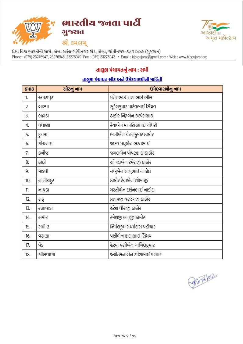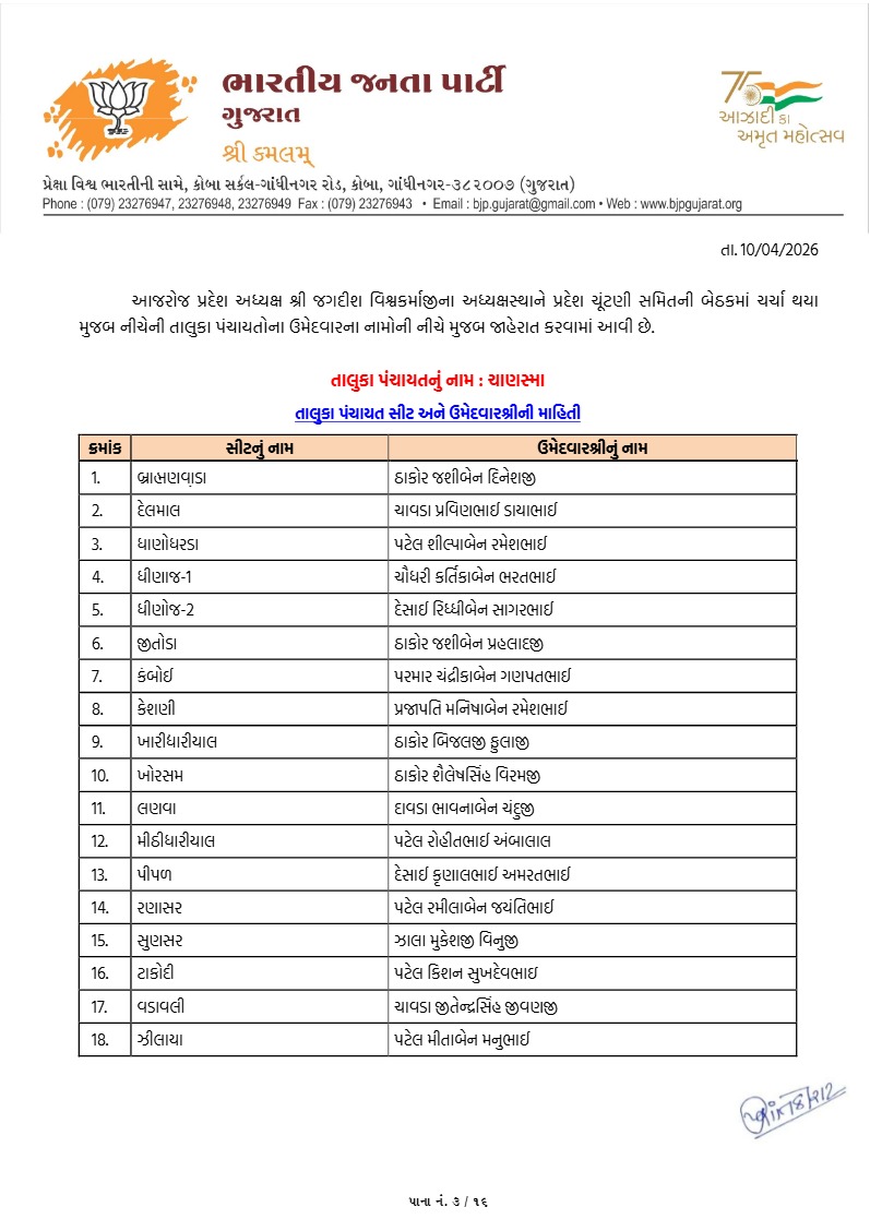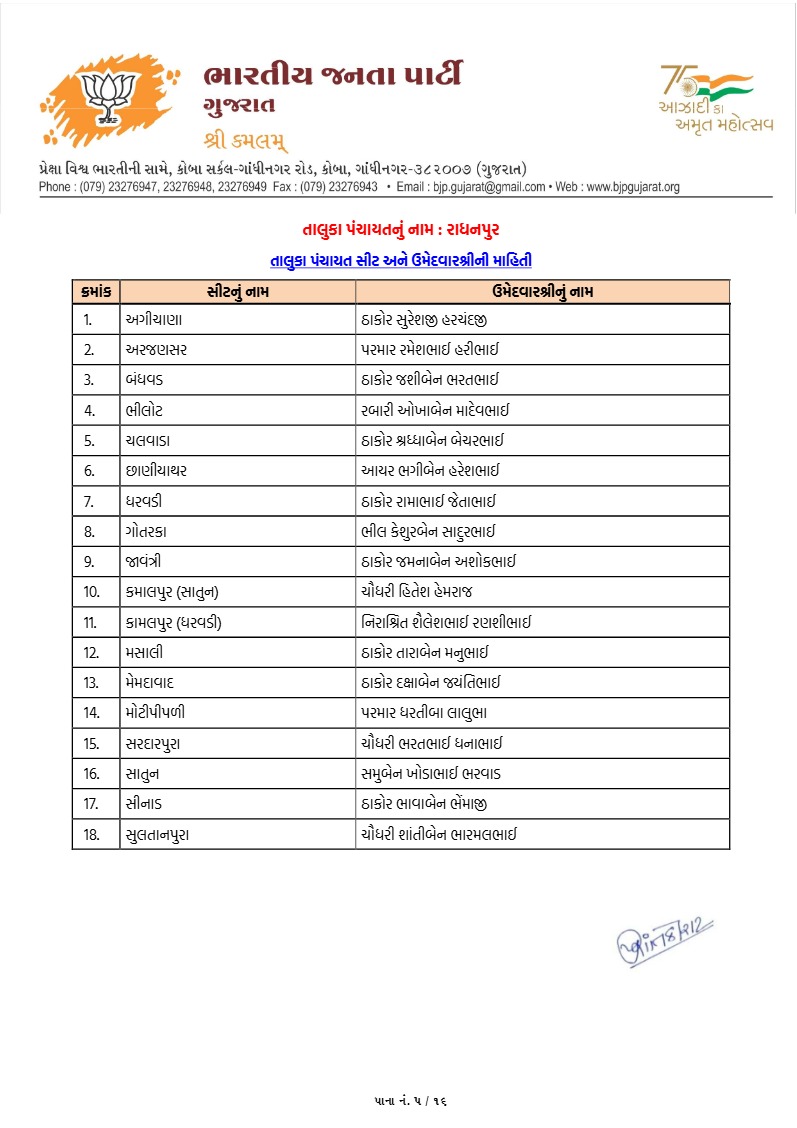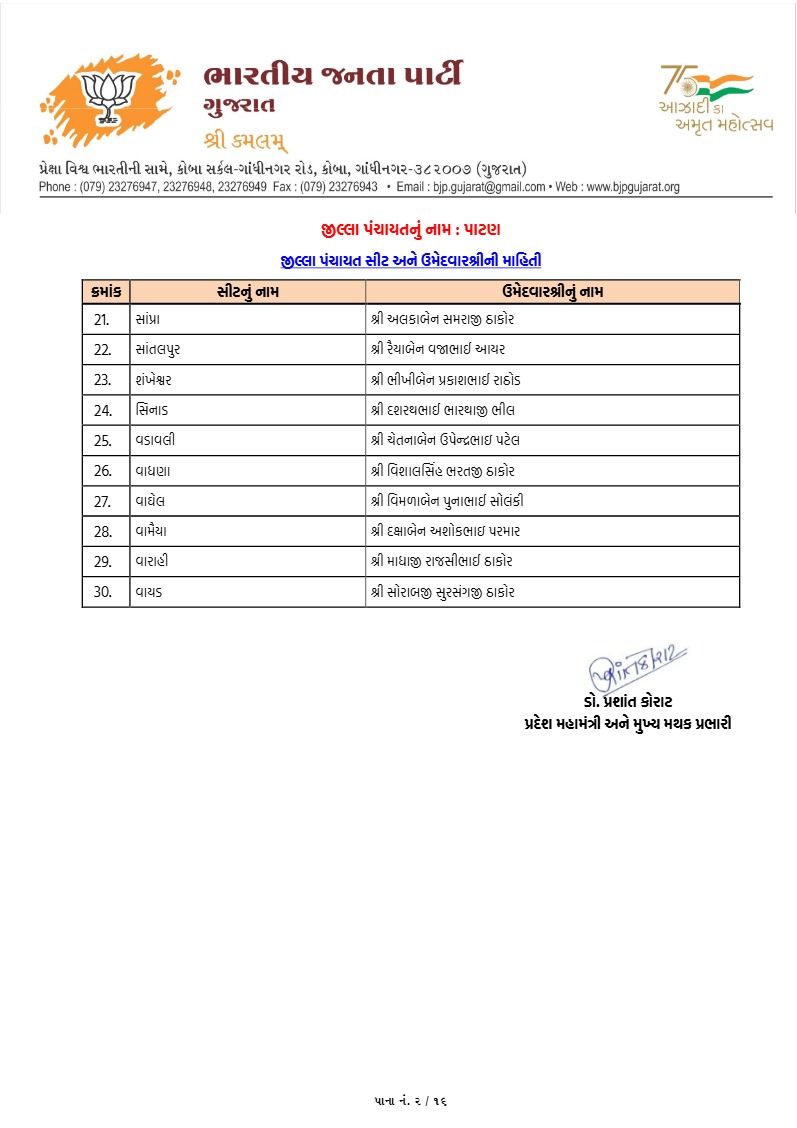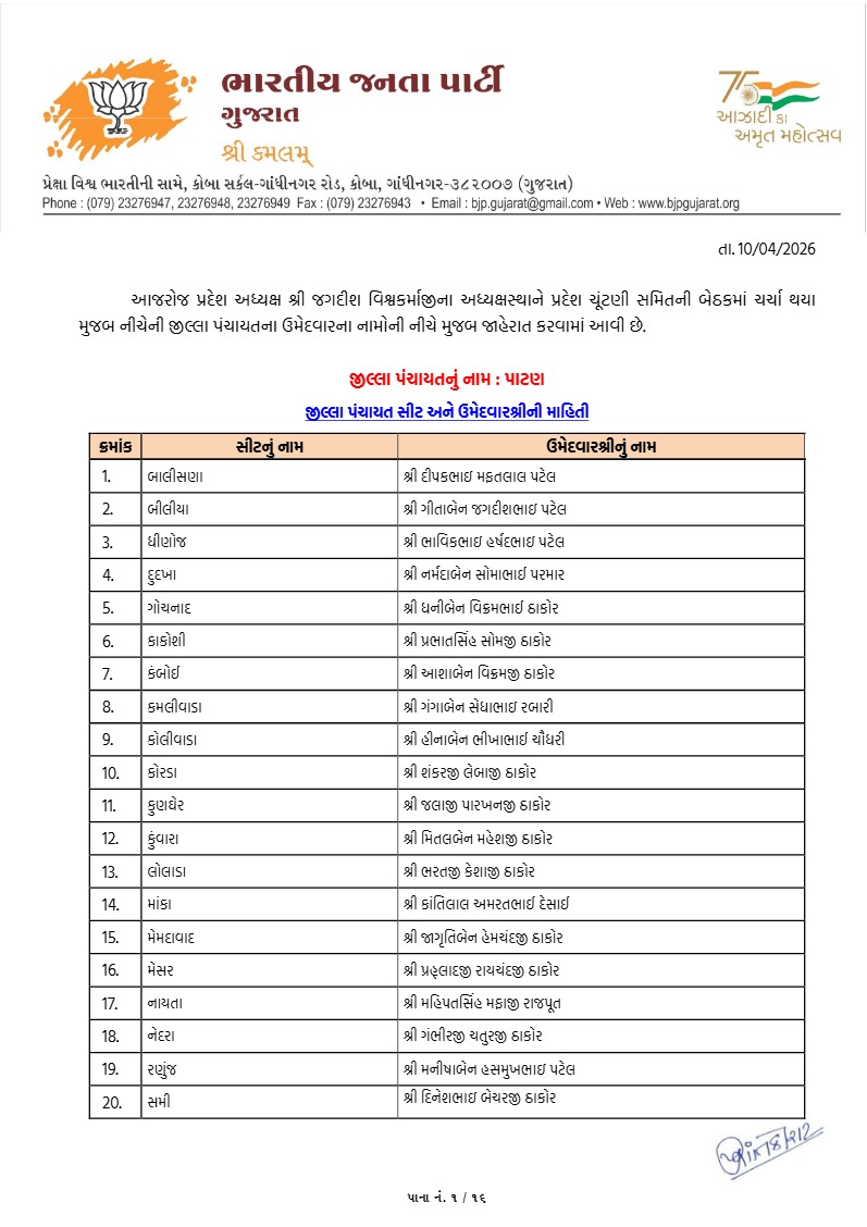 પાટણના સંગ્રામમાં ભાજપના 'કેસરીયા' સજ્જ : ઉમેદવારોની સત્તાવાર યાદી જાહેર