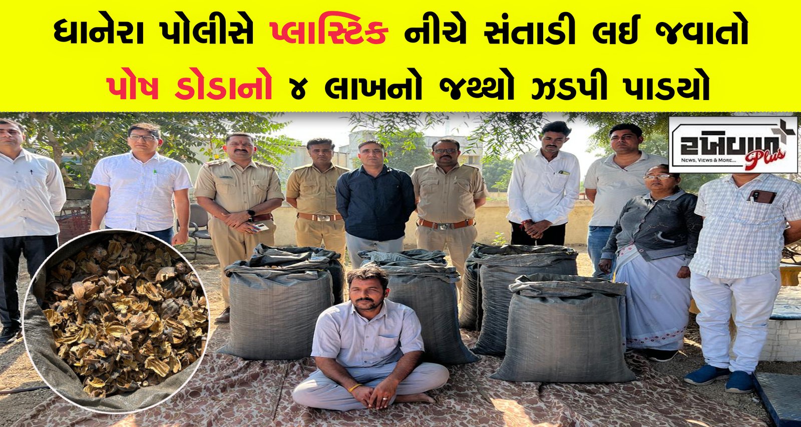 ધાનેરા પોલીસે પ્લાસ્ટિક નીચે સંતાડી લઈ જવાતો પોષ ડોડાનો 4 લાખનો જથ્થો ઝડપી પાડયો