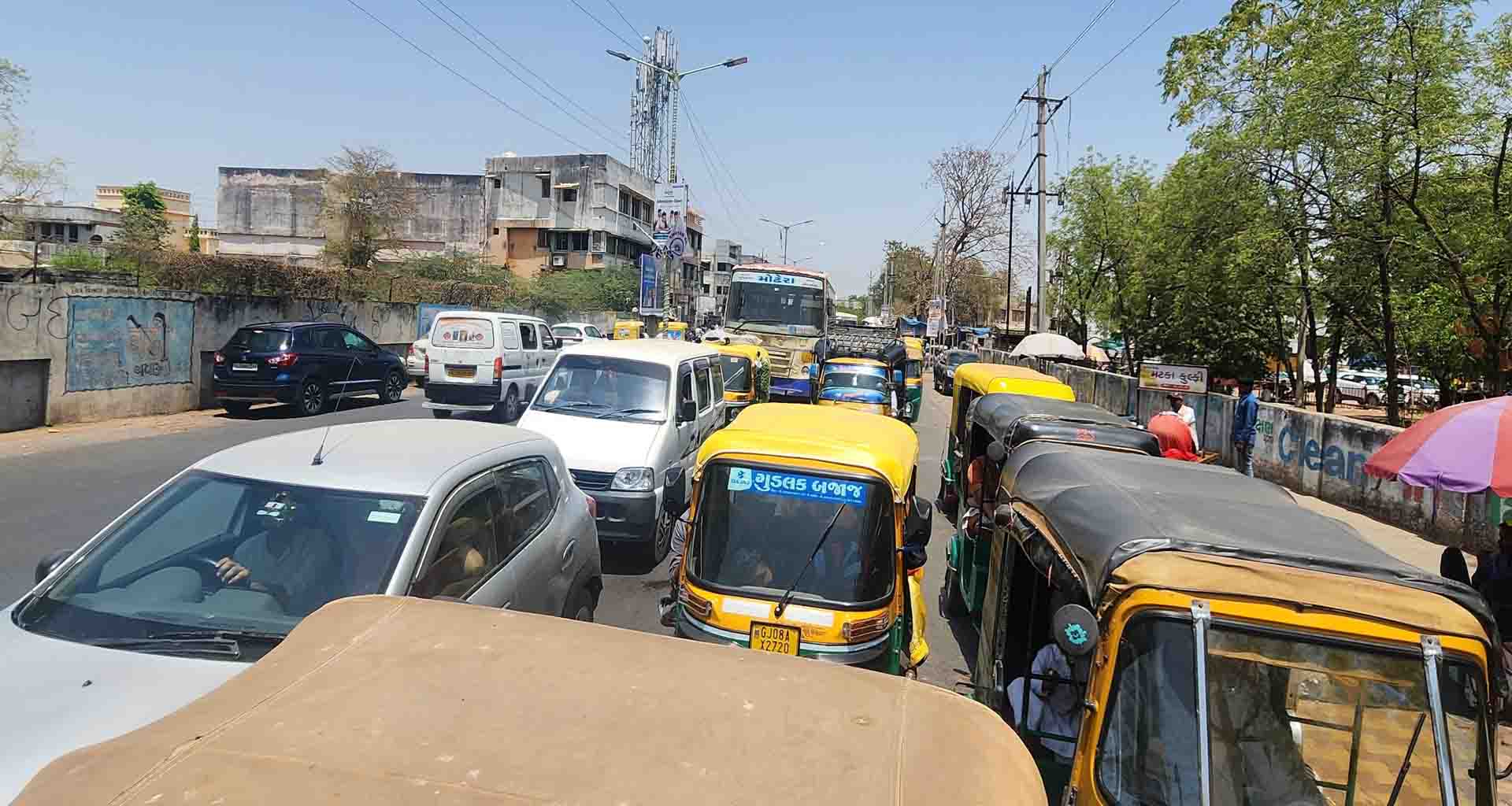 ડીસામાં બગીચા સર્કલ નજીક ફરી ટ્રાફિક ચક્કાજામ; બનાસકાંઠા જિલ્લાના તાલુકા મથક ડીસાના સરદાર બાગ નજીકના બગીચા સર્કલ ઉપર દિવસ દરમિયાન ટ્રાફિકજામની સમસ્યા રોજિંદી છે. દિવસ દરમિયાન આ સર્કલ ઉપર વારંવાર કલાકો સુધી ટ્રાફિકજામ થાય છે પરંતુ હાલમાં ફરી એકવાર કાળઝાળ ગરમી વચ્ચે ટ્રાફિકજામ થતા વાહન ચાલકો અને રાહદારીઓ અકળાઈ ઉઠ્યા હતા.