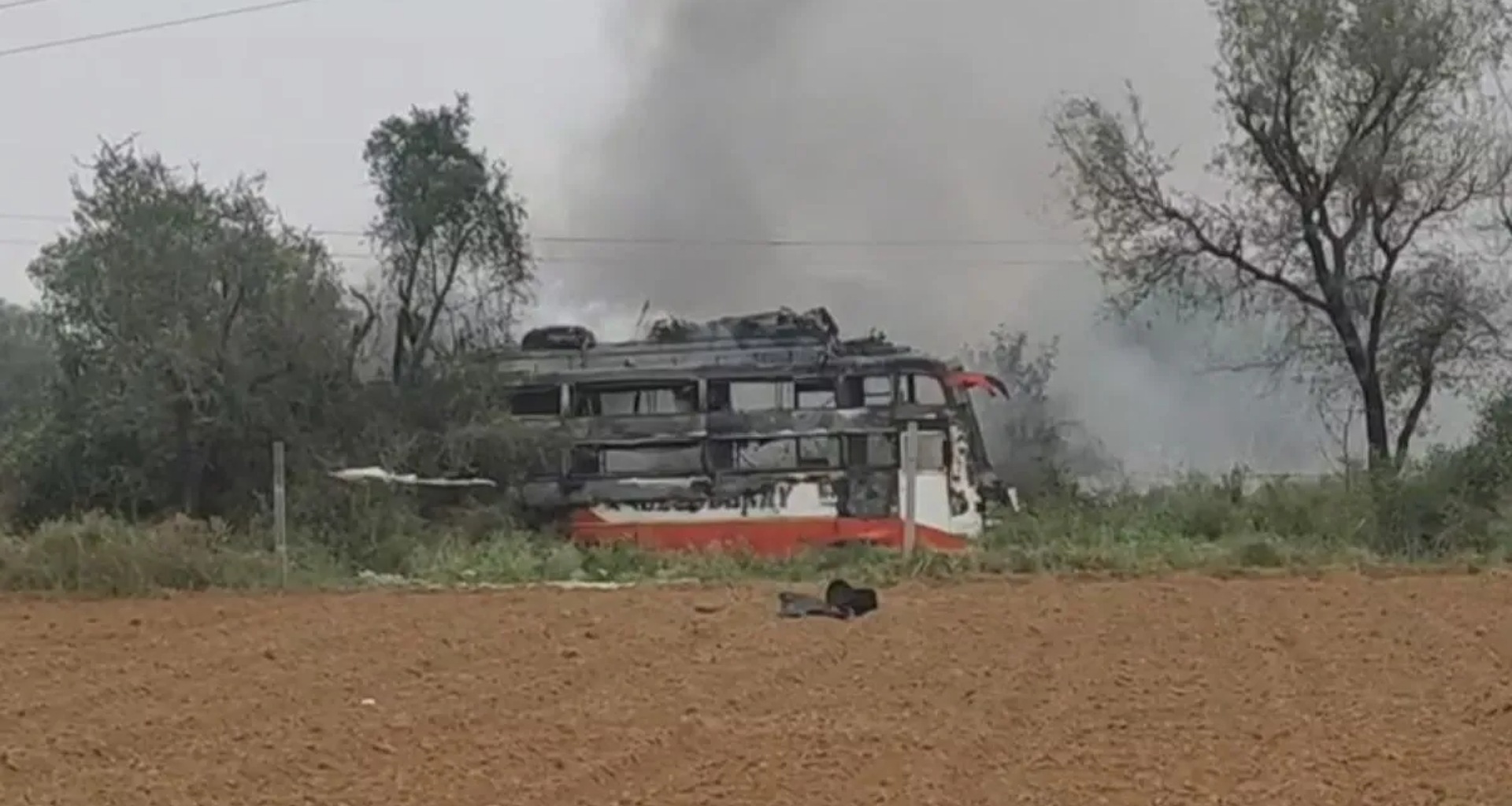 મનોહરપુર પોલીસ સ્ટેશન વિસ્તારના ટોડી ગામમાં, મજૂરોથી ભરેલી બસ હાઇ ટેન્શન લાઇનના સંપર્કમાં આવતાં વીજ કરંટ લાગ્યો. આ અકસ્માતમાં બે મજૂરોના ઘટનાસ્થળે જ મોત થયા હતા, જ્યારે લગભગ એક ડઝન મજૂરો બળી ગયા હતા. મળતી માહિતી મુજબ, મજૂરોથી ભરેલી બસ યુપીથી મનોહરપુરના ટોડી ખાતે સ્થિત ઇંટ ભઠ્ઠામાં આવી રહી હતી. રસ્તામાં, બસ ઉપરથી પસાર થતી 11 હજાર વોલ્ટની લાઇનના સંપર્કમાં આવી ગઈ, જેના કારણે બસમાં કરંટ ફેલાયો અને સ્પાર્કિંગથી આગ લાગી. ઘટના બાદ ઘટનાસ્થળે ચીસો અને અરાજકતા ફેલાઈ ગઈ. માહિતી મળતાં જ મનોહરપુર પોલીસ અને વહીવટી અધિકારીઓ ઘટનાસ્થળે પહોંચ્યા અને ઘાયલોને શાહપુરા સબ-ડિસ્ટ્રિક્ટ હોસ્પિટલમાં લઈ જવામાં આવ્યા. ગંભીર રીતે દાઝી ગયેલા પાંચ કામદારોને પ્રાથમિક સારવાર બાદ જયપુર રિફર કરવામાં આવ્યા હતા. ઘટનાસ્થળે પહોંચેલી ફાયર બ્રિગેડની મદદથી આગ પર કાબુ મેળવવામાં આવ્યો હતો. પોલીસે મૃતકોના મૃતદેહને પોસ્ટમોર્ટમ માટે શબઘરમાં જમા કરાવ્યા છે અને ઘટનાની તપાસ શરૂ કરી છે. આ ઘટનાનો એક વીડિયો પણ સામે આવ્યો છે. વીડિયોમાં સ્પષ્ટપણે જોવા મળે છે કે બસ સંપૂર્ણપણે આગમાં લપેટાઈ ગઈ છે. બસ સંપૂર્ણપણે નાશ પામી હતી. ઘટના બાદ સ્થાનિક અધિકારીઓ ઘટનાસ્થળે પહોંચ્યા અને આગ પર કાબુ મેળવ્યો. આ પહેલા, ૧૪ ઓક્ટોબરના રોજ, જેસલમેરમાં એક ચાલતી બસમાં આગ લાગી હતી. આ આગ એસી સિસ્ટમમાં શોર્ટ સર્કિટને કારણે લાગી હતી. આ ભયાનક બસમાં આગ લાગવાથી ૨૬ લોકોના મોત થયા હતા. જોધપુર જતી એક ખાનગી બસ જેસલમેરથી નીકળ્યાના દસ મિનિટ પછી જ આગ લાગી ગઈ હતી. ઓગણીસ મુસાફરો જીવતા બળી ગયા હતા અને ૧૬ અન્ય લોકો ગંભીર રીતે દાઝી ગયા હતા. અધિકારીઓના જણાવ્યા અનુસાર, ગંભીર રીતે ઘાયલ થયેલા એક વ્યક્તિનું હોસ્પિટલ લઈ જતી વખતે રસ્તામાં મૃત્યુ થયું હતું, જ્યારે કેટલાક અન્ય લોકો પછીથી મૃત્યુ પામ્યા હતા.