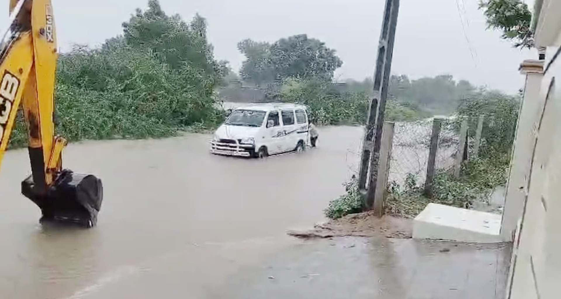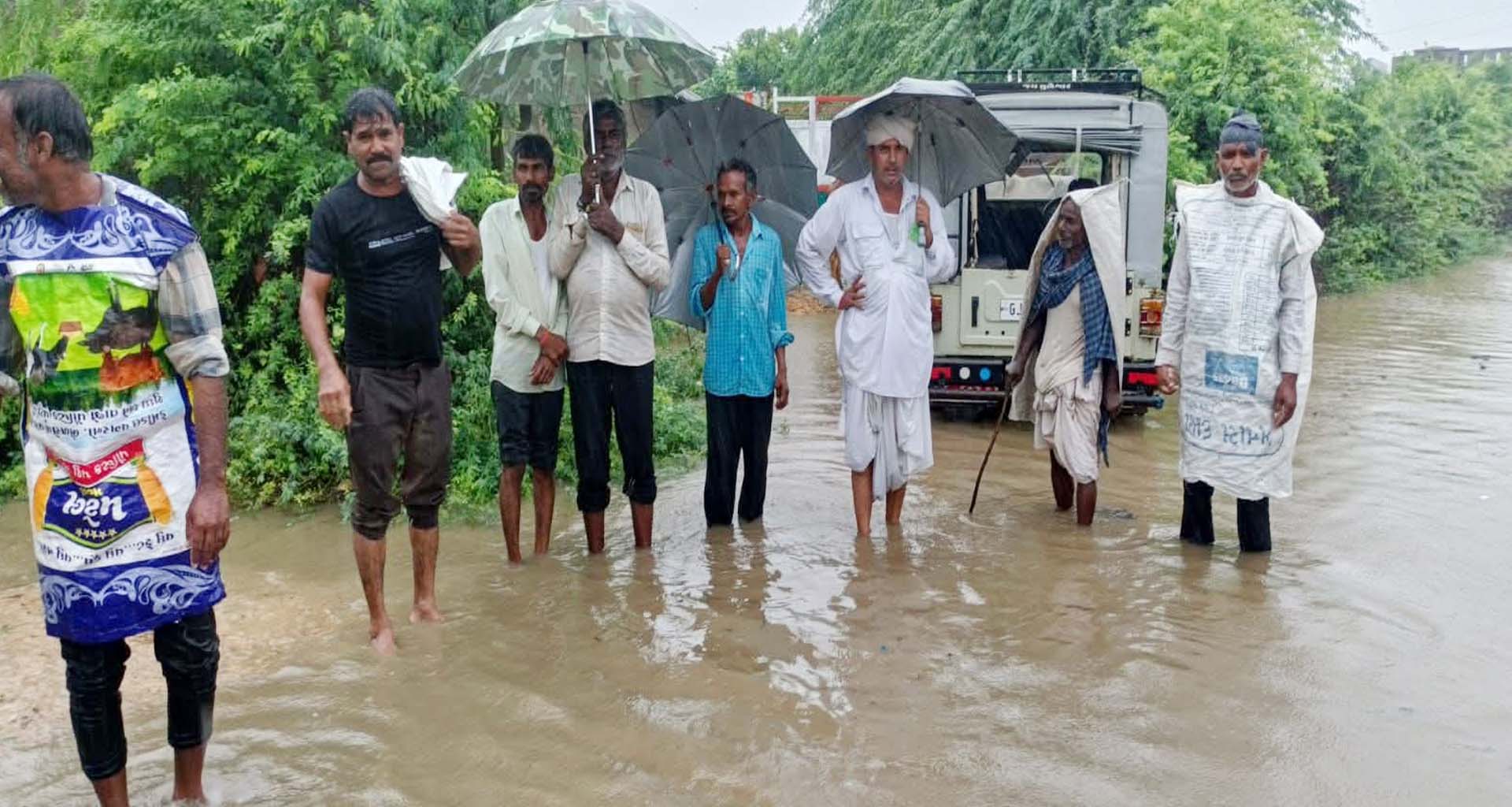 સરહદી પંથક એવા વાવ અને સુઇગામ તાલુકામાં સતત 18 કલાકથી ભારે તોફાની પવન સાથે વરસાદ વરસી રહ્યો છે.ત્યારે ખેડૂતોના ઉભેલા ચોમાસુ પાકનો સોથ વળી ગયો છે.જો કે વાવ તાલુકાના ભાટવર વાસ અને ગામ ખાતે વરસાદી પાણી લોકોના ઘર માં ફરી વળ્યાં છે.પાણીના ભરાવાને લઈને ભાટવરવાસનો મુખ્ય માર્ગ બલોક થઈ ગયો છે.મુખ્ય માર્ગ પર 3 ફૂટ પાણી ભરાઈ જતાં એક મહિલાને ડિલવેરીના કામે હોસ્પિટલ લઈ જવતી ઇકો ગાડી ફસાઈ જતાં જે.સી.બી. મશીનથી ગાડી ને બહાર કાઢી હોવાનું ગામના પરસોત્તમભાઈ નાઈએ જણાવ્યું હતું.