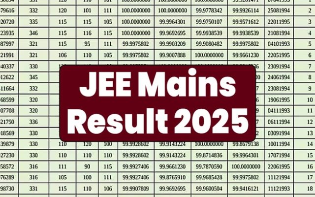 નેશનલ ટેસ્ટિંગ એજન્સી (NTA) દ્વારા એન્જિનિયરિંગ કોલેજોમાં પ્રવેશ માટે લેવામાં આવેલી જોઈન્ટ એન્ટ્રન્સ એક્ઝામિનેશન (JEE) મેઈન 2025ના બીજા તબક્કાનું પરિણામ જાહેર કરવામાં આવ્યું હતું. JEE મુખ્ય સત્ર એક અને બીજા સત્રની પરીક્ષામાં કુલ 24 ઉમેદવારોએ 100 પર્સન્ટાઇલ મેળવ્યા છે. જેમાં રાજસ્થાનના ઓમ પ્રકાશ બેહેરા, સક્ષમ જિંદાલ, અર્ણવ સિંહ, રજિત ગુપ્તા, મોહમ્મદ અનસ, આયુષ સિંઘલ અને લક્ષ્ય શર્માએ ટોપ પર છે. જ્યારે ગુજરાતના શિવેન વિકાસ તોષનીવાલ અને અદિત પ્રકાશ ભગડે 100 પર્સન્ટાઇલ મેળવ્યા છે. ગુજરાતમાં શિવેન વિકાસ તોસનીવાલ અને આદિત પ્રકાશ ભાગડેએ 100 પર્સન્ટાઈલ રેન્ક મેળવીને ટોપ કર્યું હતું.