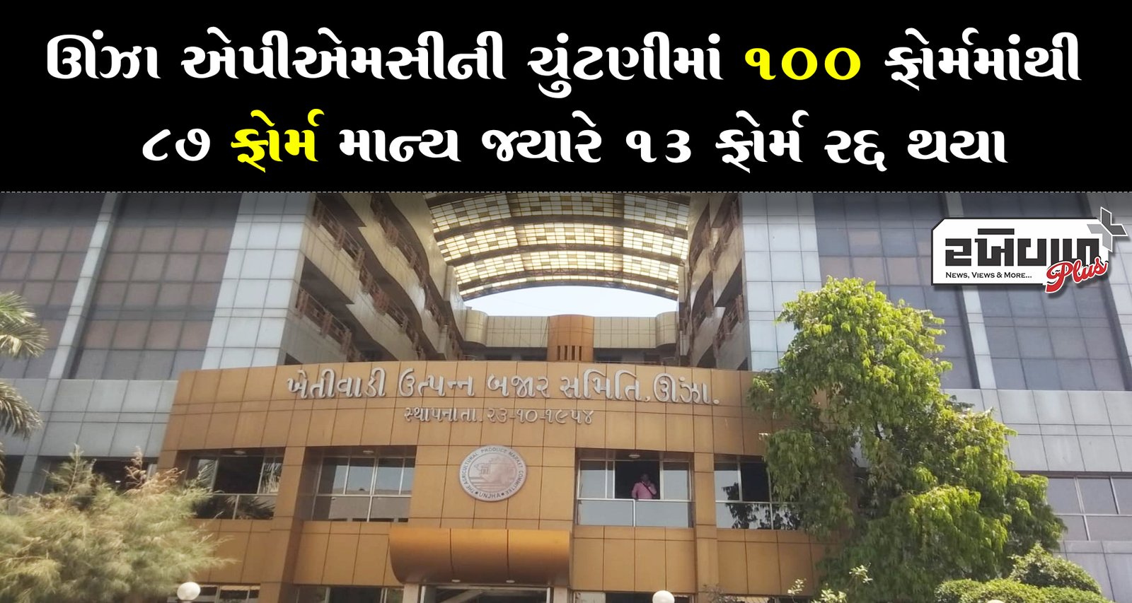 ઊંઝા એપીએમસીની ચુંટણીમાં ૧૦૦ ફોર્મમાંથી ૮૭ ફોર્મ માન્ય જ્યારે ૧૩ ફોર્મ રદ્દ થયા