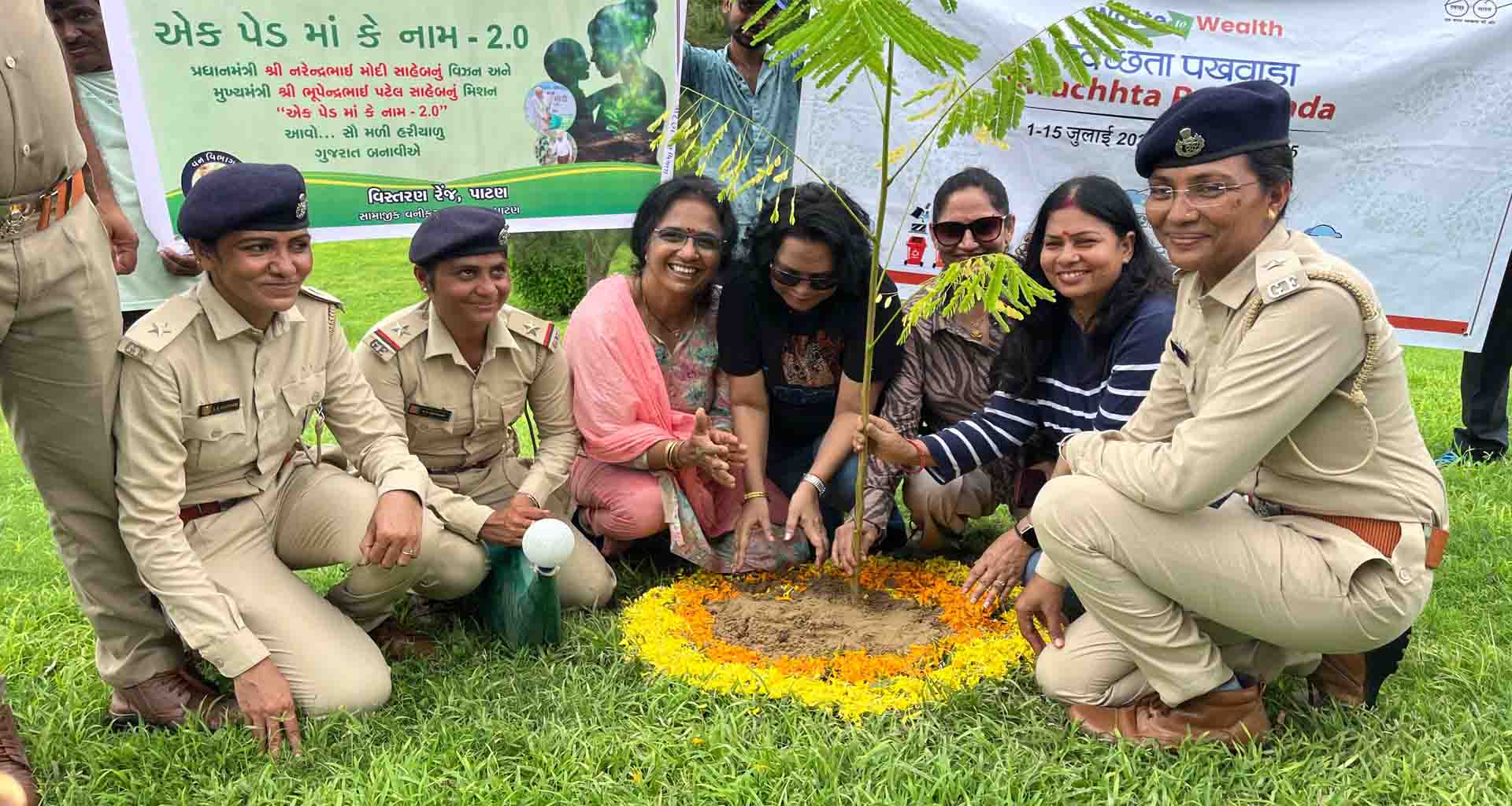 વૃક્ષારોપણ કાર્યક્રમમાં એન.જે.પરમાર નાયબ વન સંરક્ષક પાટણ, ટી.એચ.ચૌધરી મદદનીશ વન સંરક્ષક પાટણ, શ્રીમતિ પી.એમ.ચૌધરી પરીક્ષેત્ર વન અધિકારી પાટણ,ઓએનજીસી મહેસાણાના ઈડી સુનીલકુમાર, પ્રમોદ ચાહર એચ.એ પુરાતત્ત્વ વિભાગ, શિવકાત ભારતી સી એ પુરાતત્ત્વ વિભાગ, વિજયભાઈ ચોધરી નિયામક મોતીલાલ ચૌધરી ફાઉન્ડેશન મહેસાણા, વી.એલ.દેસાઈ, વી.એસ ઠાકોર, વી.એસ ઈટોલીયા એસ.એસ. પરમાર, એચ.પી.પટેલ, એ.એસ.ચોધરી, બી.એન.ચૌધરી વગેરે સહભાગી બન્યા હતા.ટેગ્સ:#Community Engagement#Tree Plantation#Environmental Initiatives#Biodiversity Conservation#Ran Ki Vav#Ek Pad Ma Ke Naam#Swachhta Fortnight#ONGC Mehsana Asset#Motibhai Chaudhary Foundation#Forest Department Patan#Plastic Recycling