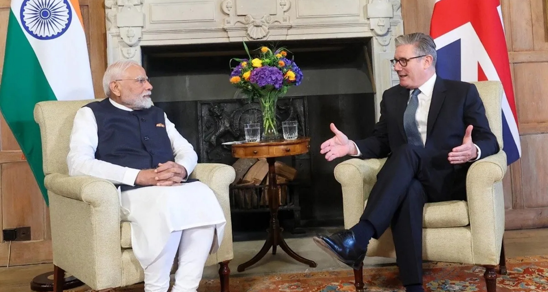 વડા પ્રધાન નરેન્દ્ર મોદીએ ગુરુવારે પાકિસ્તાન પર આડકતરી રીતે નિશાન સાધ્યું અને કહ્યું કે આતંકવાદ સામેની લડાઈમાં "બેવડા ધોરણો" માટે દુનિયામાં કોઈ સ્થાન નથી. વડા પ્રધાને લંડનમાં તેમના બ્રિટિશ સમકક્ષ કીર સ્ટારમર સાથે મીડિયાને સંબોધન કરતી વખતે આ ટિપ્પણી કરી. પોતાના મીડિયા નિવેદનમાં, મોદીએ પહેલગામ આતંકવાદી હુમલાની સખત નિંદા કરવા બદલ બ્રિટનનો આભાર માન્યો અને કહ્યું કે બંને પક્ષો એકમત છે કે "આતંકવાદ સામેની લડાઈમાં બેવડા ધોરણો માટે કોઈ સ્થાન નથી. પીએમ મોદીએ કહ્યું, "અમે એ વાત પર પણ સંમત છીએ કે આતંકવાદી વિચારધારા ધરાવતી શક્તિઓને લોકશાહી સ્વતંત્રતાઓનો દુરુપયોગ કરવાની મંજૂરી આપી શકાતી નથી." પ્રધાનમંત્રી મોદીએ કહ્યું કે બંને દેશોની સુરક્ષા એજન્સીઓ આર્થિક અપરાધીઓના પ્રત્યાર્પણ જેવા મુદ્દાઓ પર સહયોગ અને સંકલન કરવાનું ચાલુ રાખશે. ભારત અને બ્રિટને ગુરુવારે એક ઐતિહાસિક મુક્ત વેપાર કરાર (FTA) પર હસ્તાક્ષર કર્યા, જેનાથી વાર્ષિક દ્વિપક્ષીય વેપારમાં લગભગ $34 બિલિયનનો વધારો થવાની ધારણા છે. આ કરાર 99 ટકા ભારતીય નિકાસ પરની ડ્યુટી નાબૂદ કરશે અને બ્રિટિશ વ્હિસ્કી, કાર અને અન્ય ઘણી વસ્તુઓ પરની ડ્યુટી પણ ઘટાડશે. આ કરાર પર વડા પ્રધાન નરેન્દ્ર મોદી અને બ્રિટિશ વડા પ્રધાન કીર સ્ટાર્મરની હાજરીમાં હસ્તાક્ષર કરવામાં આવ્યા હતા. વાણિજ્ય પ્રધાન પીયૂષ ગોયલ અને તેમના બ્રિટિશ સમકક્ષ જોનાથન રેનોલ્ડ્સે તેના પર હસ્તાક્ષર કર્યા હતા.