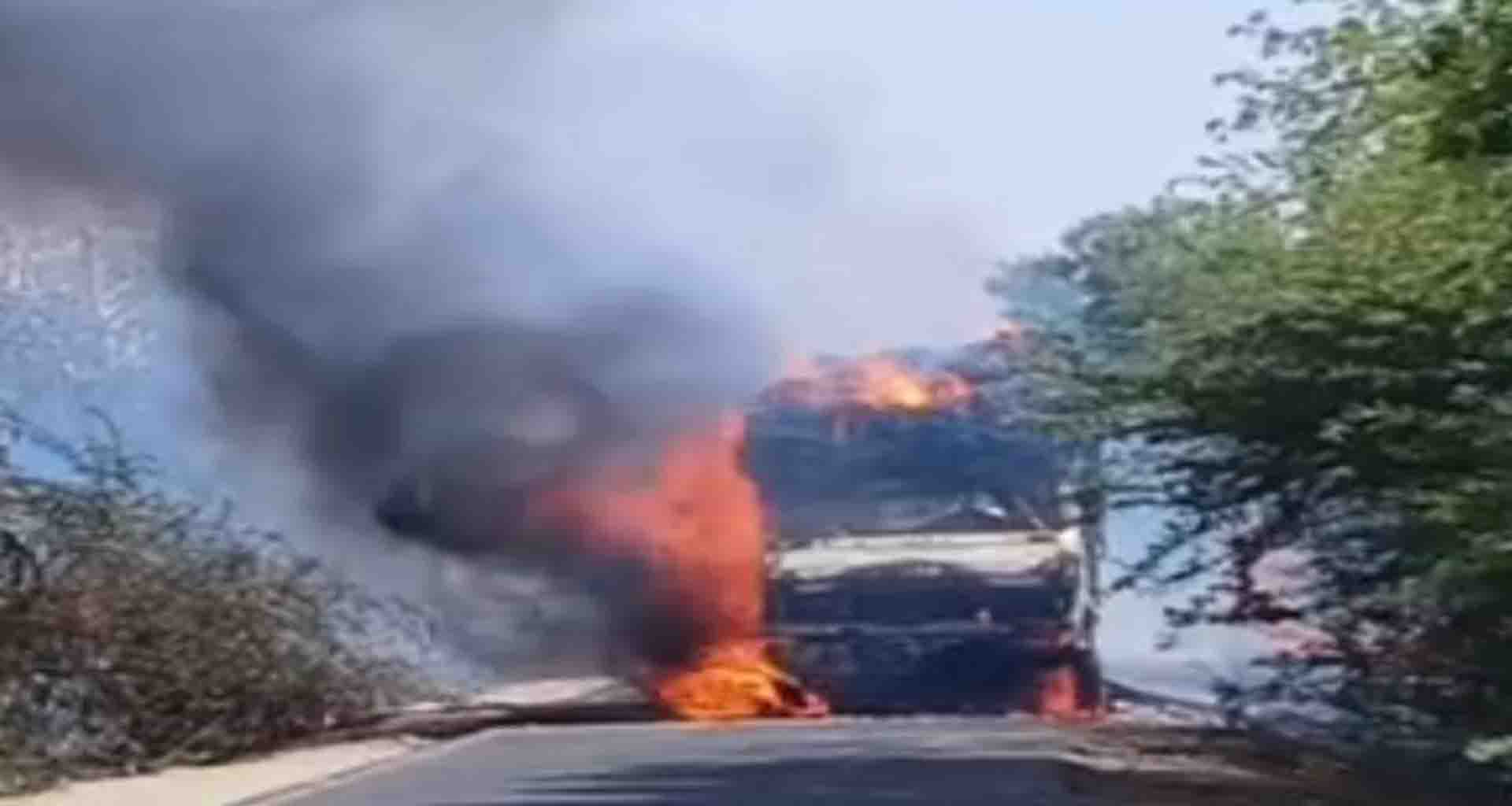 ટેગ્સ:#short circuit#Emergency Response#Traffic Incident#Road Safety#Fire Safety#Driver Rescue#Sami Highway#Truck Fire#Fodder Transport#Dudkha Village#Local Crowd Reaction#Highway Chaos