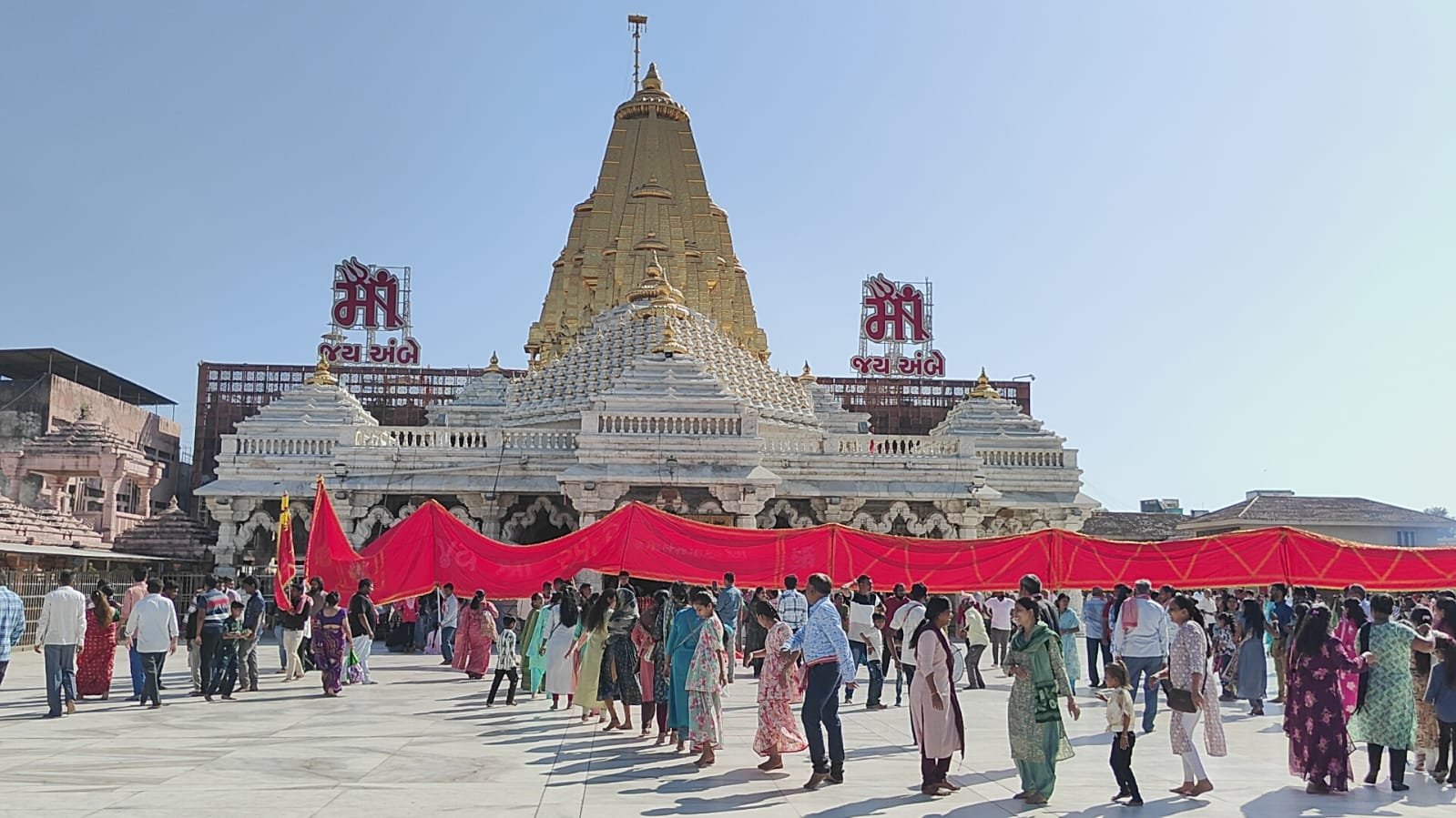 નવાવર્ષ બાદ સૌપ્રથમ કાર્તકી પૂનમ ને ગણતરી ના દિવસ બાકી રહ્યા છે ત્યારે શક્તિપીઠ અંબાજી મંદિર માં પદયાત્રીઓ નો ઘસારો વધી રહ્યો છે આજે વહેલી સવાર થીજ અંબાજી મંદિર માં ભક્તો ની ભારેભીડ જોવા મળી હતી એટલુંજ નહિ અને શ્રદ્ધાળુઓ નાનીમોટી અનેક ધજાઓ મંદિર ના શિખરે ચઢાવવા માટે લઈને પહોંચ્યા હતા ત્યારે અમદાવાદ નો એક સંઘ 170 કિલોમીટર ની પદયાત્રા કરી 200 કલાક માં અંબાજી 52 ગજ ની બે ધજાઓ લઈને પહોંચ્યા હતા.