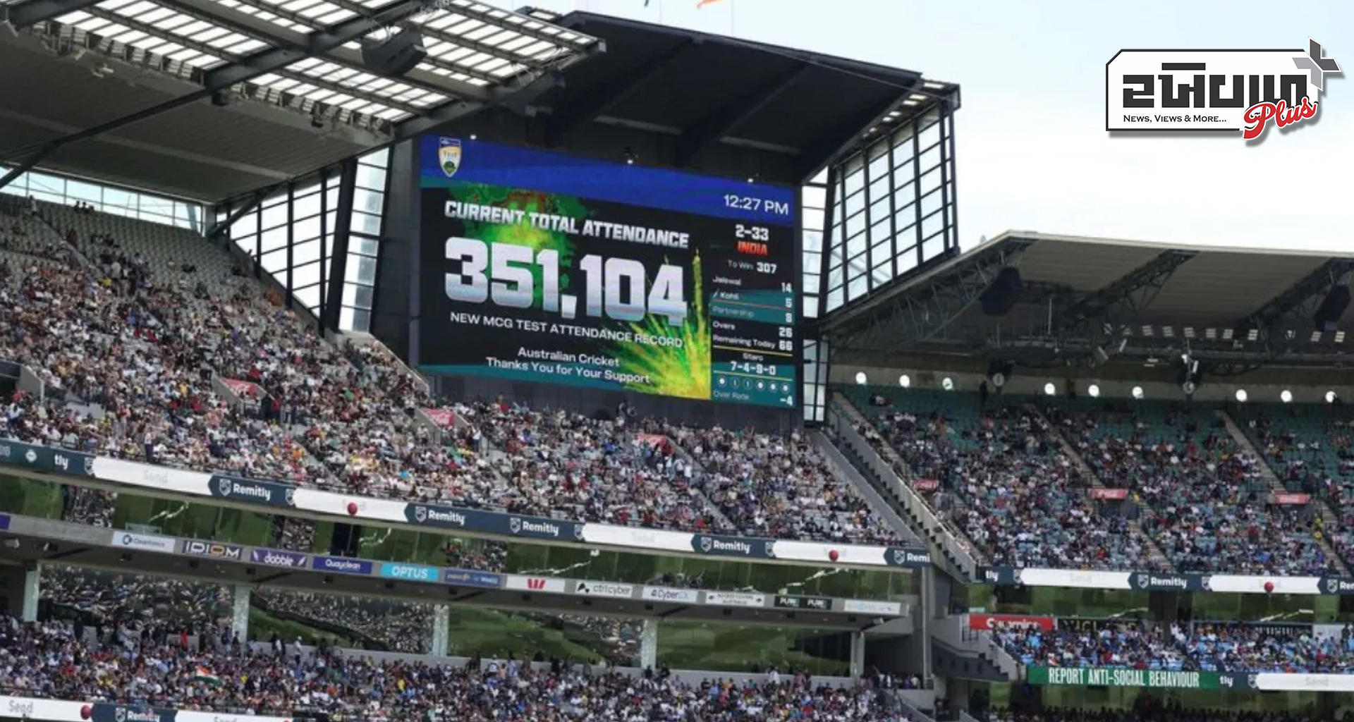 ભારત અને ઓસ્ટ્રેલિયા વચ્ચે મેલબોર્નના મેદાન પર રમાઈ રહેલી બોક્સિંગ ડે ટેસ્ટ મેચના 5માં દિવસે ચાહકોએ 87 વર્ષ જૂનો એક મોટો રેકોર્ડ તોડી નાખ્યો. પાંચ દિવસ સુધી આ મેચ જોવા માટે કુલ ચાહકોની સંખ્યા 350,700 થી વધુ હતી.મેલબોર્ન ક્રિકેટ ગ્રાઉન્ડ પર રમાઈ રહેલી ભારત અને ઓસ્ટ્રેલિયા વચ્ચે બોક્સિંગ ડે ટેસ્ટ મેચ ખૂબ જ રોમાંચક સ્થિતિમાં પહોંચી ગઈ છે, ત્યારે રમતના 5માં દિવસે ખેલાડીઓ નહીં પણ લોકો તેને જોઈ રહ્યા છે. સ્ટેડિયમમાં આવેલા પ્રશંસકોએ 87 વર્ષ જૂનો રેકોર્ડ તોડ્યો છે. ઓસ્ટ્રેલિયામાં મોટી સંખ્યામાં ઉમટેલા ભારતીય ચાહકો પણ આ મેચ જોવા માટે સ્ટેડિયમમાં આવ્યા છે જેના કારણે ચાહકોએ એકસાથે કામ કર્યું છે નવો રેકોર્ડ બનાવવા માટે. જ્યારે પણ ભારતીય ટીમ વિશ્વના કોઈપણ મેદાન પર મેચ રમે છે ત્યારે સ્ટેડિયમમાં મોટી સંખ્યામાં ચાહકો જોવા મળે છે. આવું જ કંઈક અગાઉ MCG મેદાન પર પણ જોવા મળ્યું હતું, જ્યારે વર્ષ 2022માં અહીં T20 વર્લ્ડ કપમાં ભારતે પાકિસ્તાન સામે મેચ રમી હતી, જેમાં કુલ 90,293 ચાહકો સ્ટેડિયમમાં મેચ જોવા આવ્યા હતા. આ સિવાય આ જ ટૂર્નામેન્ટમાં ઝિમ્બાબ્વે સામેની મેચમાં 82,507 ફેન્સ મેચ જોવા માટે MCG ગ્રાઉન્ડ પર આવ્યા હતા.