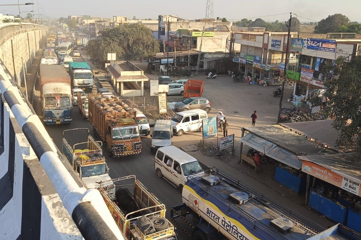 વાહનોની લાંબી કતારો લાગતા વાહન ચાલકો અટવાયા