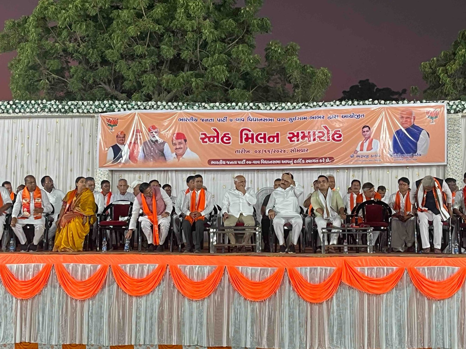 ભાભર ખાતે ભાજપના નૂતન વર્ષ સ્નેહ મિલનમાં અડધું મંત્રી મંડળ હાજર નડાબેટ ટુરિઝમે સરહદી પંથકને વૈશ્વિક ઓળખ અપાવી : શંકરભાઈ ચૌધરી બનાસકાંઠા જિલ્લાની વાવ બેઠક પર કસોક્સનો ત્રિપાંખીયો ચૂંટણી જંગ ખેલાઈ રહ્યો છે ત્યારે ભાભર ખાતે આયોજીત ભાજપના નૂતન વર્ષ સ્નેહ મિલન કાર્યક્રમમાં મુખ્યમંત્રી સહિત અડધું મંત્રી મંડળ ઉપસ્થિત રહ્યું હતું અને ભાજપના ઉમેદવારને જીતાડવાની અપીલ કરી હતી. મુખ્યમંત્રી ભૂપેન્દ્રભાઈ પટેલે કોંગ્રેસના નકારાત્મક વલણ ઉપર પ્રહારો કરી જણાવ્યું કે ભાજપનો મુળમંત્ર સૌનો સાથ સૌનો વિકાસ છે. તેથી ભાજપના શાસનમાં છેવાડાના ગામોનો પણ વિકાસ થયો છે. વધુમાં જણાવ્યું કે વડાપ્રધાન નરેન્દ્રભાઈ મોદી સૌને સાથે રાખીને કામ કરે છે. તમામ લોકોએ સાથે મળીને કામ કરવું હોય તો વચ્ચે ક્યાં બીજાની અવશ્યકતા રહે છે? આપણા દેશ પર બધાની નજર છે અને ભારતનો વિકાસ દર બધા દેશો કરતા આગળ છે. ભારત 7 ટકાના વૃદ્ધિ દરથી આગળ વધી રહ્યો છે. આપણું અર્થતંત્ર 11 માં નંબરે હતું તેના પરથી હવે 5 અને હવે 3 નંબર પર આવવાનું છે.