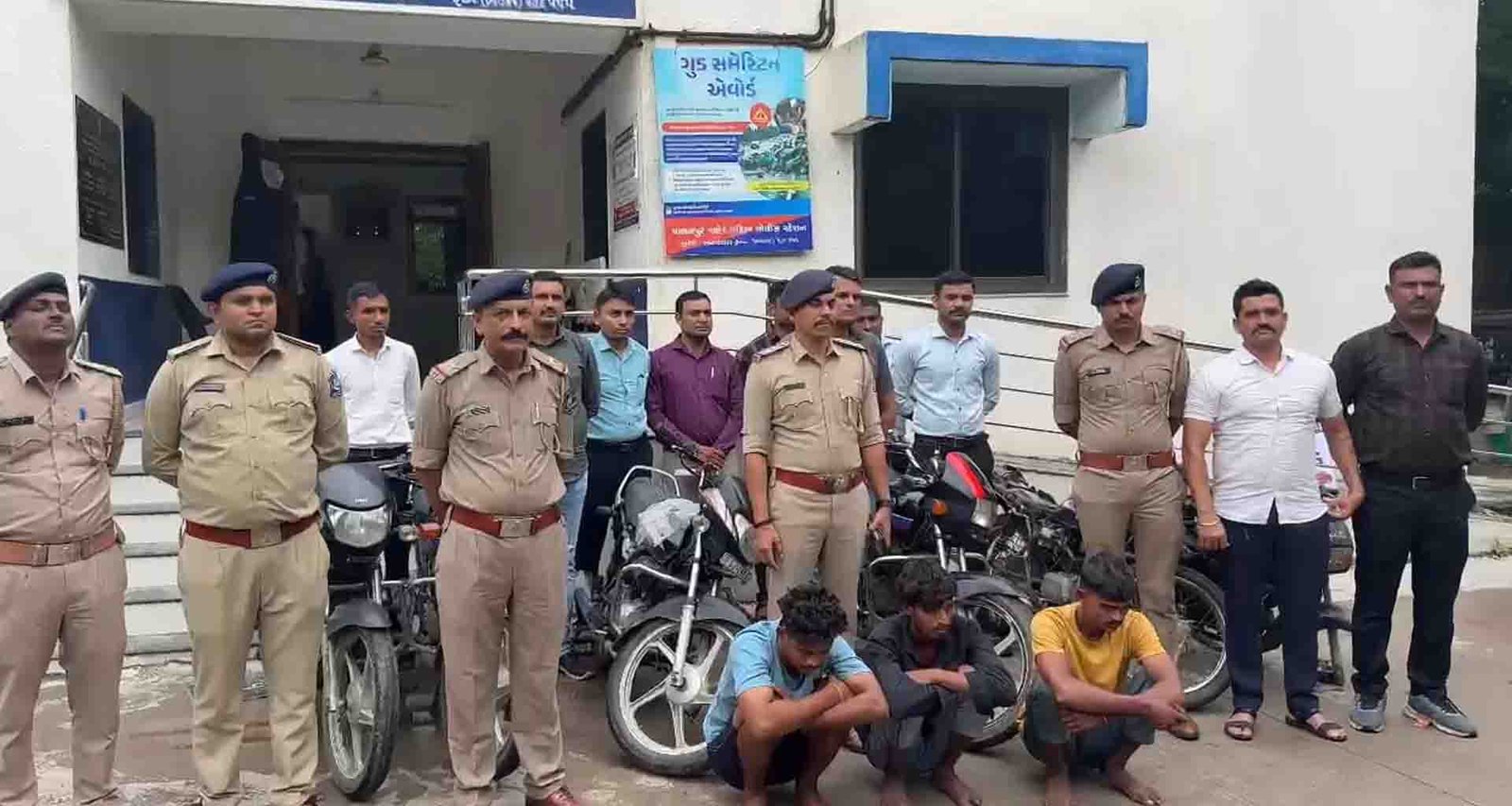 બનાસકાંઠા જિલ્લા પોલીસ વડા અક્ષયરાજ મકવાણાની સુચના તેમજ નાયબ પોલીસ અધિક્ષક ના માર્ગદર્શન હેઠળ પાલનપુર પશ્ચિમ પોલીસ મથકના પીઆઇ કે.એચ.બિહોલા પોતાના પોલીસ સ્ટાફ સાથે વાહન ચેકિંગમાં હતા. તે સમય દરમિયાન એક શંકાસ્પદ મોટર સાયકલ સાથે બે શખ્સો ઝડપાયા હતા. જેમની પૂછપરછ કરતા તેમની પાસેનું મોટર સાયકલ ચોરીનું હોવાનું સામે આવ્યું હતું જેથી તેમની આકરી પૂછપરછ કરતા તેમના દ્વારા પાલનપુર પશ્ચિમ,પૂર્વ તેમજ અમીરગઢ પોલીસ સ્ટેશન વિસ્તારમાંથી જુદા જુદા છ મોટર સાયકલ ચોરી કરી હોવાની કબુલાત કરી હતી. જેથી પોલીસે 6 મોટર સાયકલ કબજે કરી ત્રણ શખ્સોની અટકાયત કરી છે. જેના પગલે અન્ય ગુનેગારોમાં ફફડાટ પ્રસરી ગયો છે.
