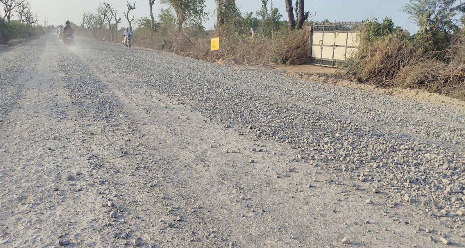 દિવાળી ટાણે જ એક કિમી રોડ પર કપચા પાથરી દેતા રોજ 20થી વધુ વાહનોને પંચર પડે છે