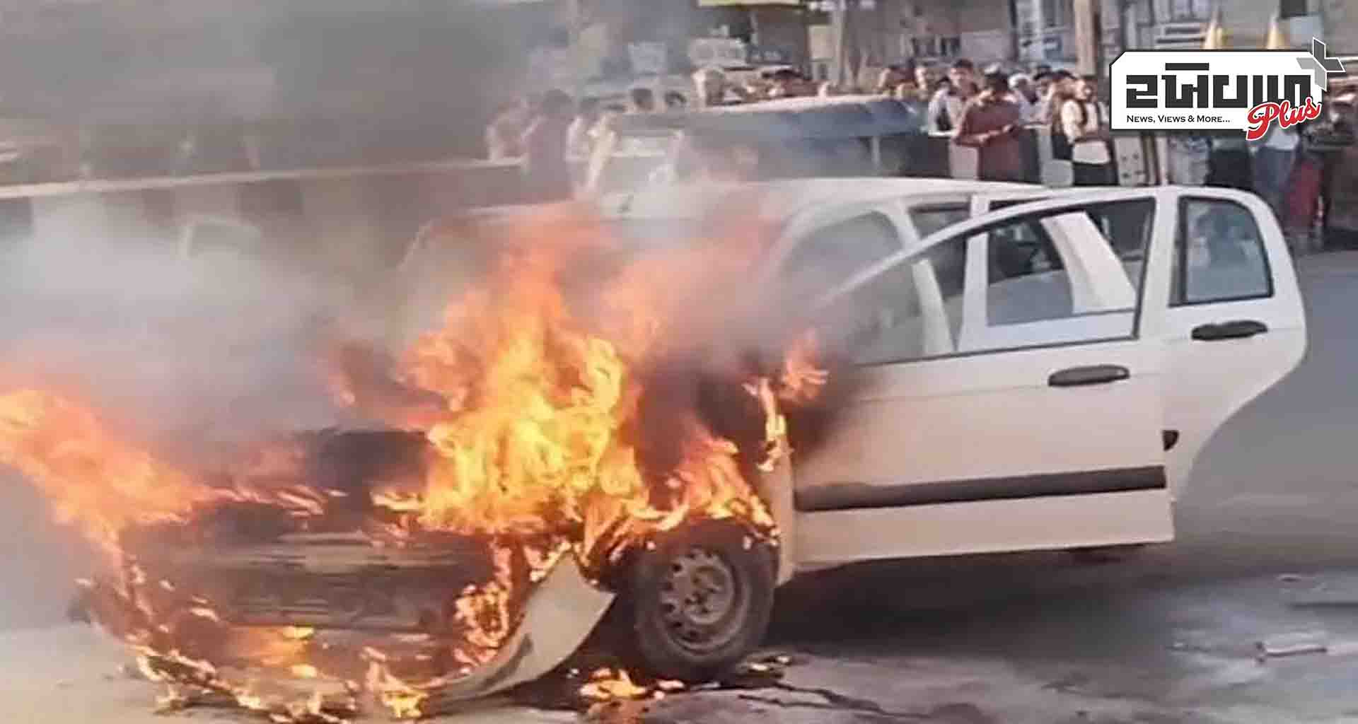 મહેસાણામાં મોઢેરા ચાર રસ્તા નજીક સેન્ટ્રો ગાડી અચાનક સળગી ઉઠી: મોટી જાનહાની ટળી