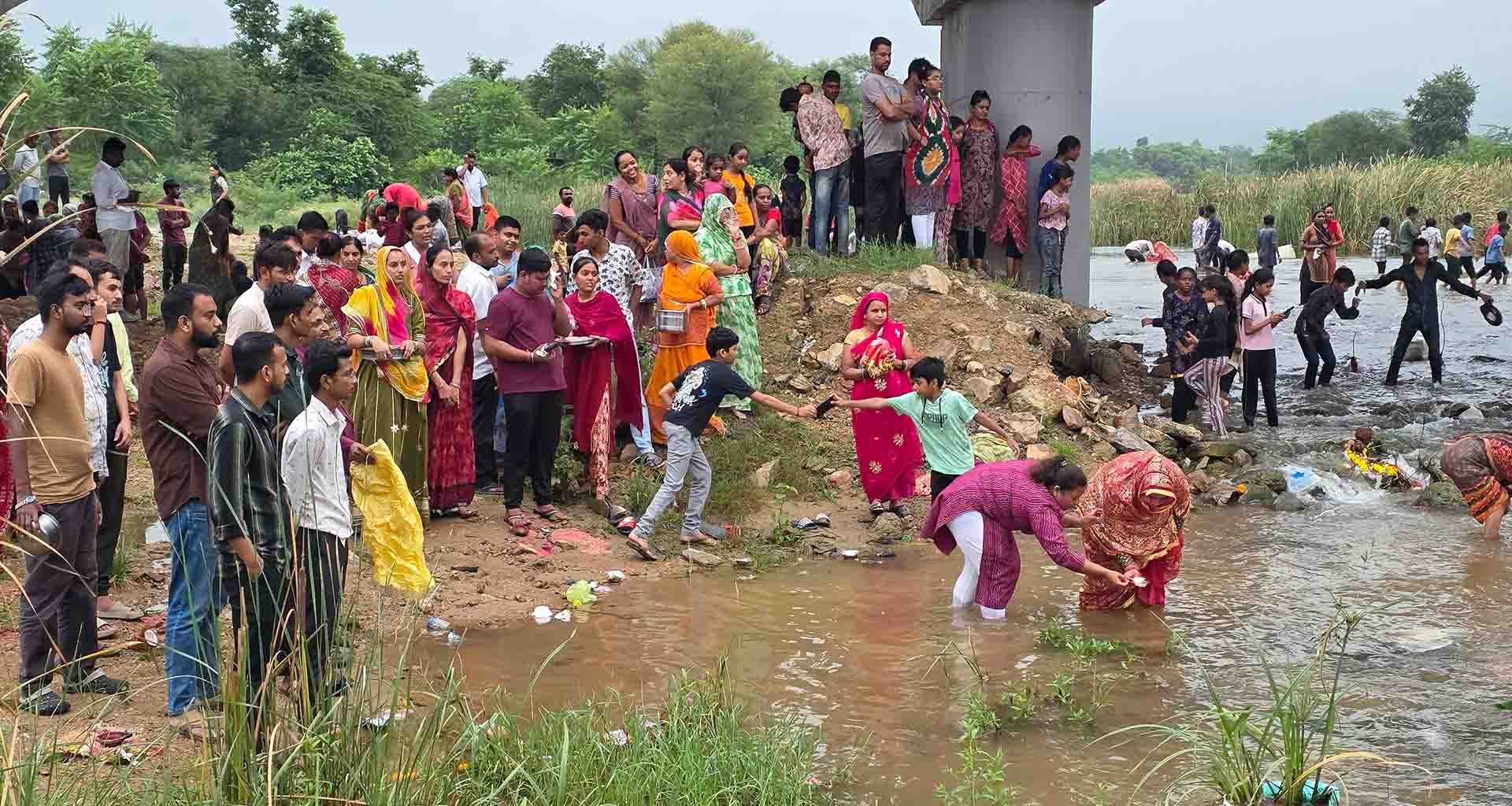હિંમતનગરના ભક્તો દશામાંની મૂર્તિને લઈને જાંબુડી ગામ પાસે વહેતી હાથમતી નદીએ પહોંચ્યા હતા. ત્યાં આજુબાજુના ગ્રામજનો અને હિંમતનગરના ભક્તો મોટી સંખ્યામાં ઉપસ્થિત રહ્યા હતા. નદી કિનારે સૌ ભક્તોએ માતાજીની મૂર્તિનું પૂજન-અર્ચન કરીને આરતી કરી હતી. ત્યારબાદ વહેતા પાણીમાં ભક્તોએ માતાજીની મૂર્તિનું વિસર્જન કર્યું હતું.ટેગ્સ:#sabarkantha#Himmatnagar#Religious Festival#Shravan Month#Dashama Vrat#Mataji Idol Immersion#Garba Celebration#Devotional Vigil#Riverbank Rituals#Gujarat Traditions