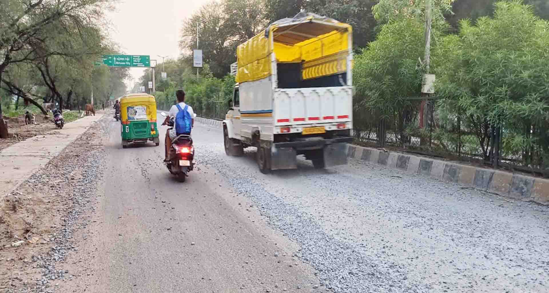 પરંતુ જો તેની બીલકુલ બાજુની સાઈડ પર આવેલા રોડની વાત કરવામાં આવે તો તે રોડની હાલત સાવ ખખડધજ બની ગઈ છે જેમાં મહાનગરપાલિકા અને માર્ગ મકાન વિભાગ દ્વારા ખાડા પુરવા માટે ફક્ત કોન્ક્રીટ અને સિમેન્ટ નાખીને રસ્તાનું પેચવર્ક કરી સમારકામ કરવામાં આવ્યું હતું જેના કારણે ત્યાંથી પસાર થતા વાહન ચાલકો અને રાહ દારીઓની હાલત કફોડી બની ગયેલી જોવા મળી રહી છે. કોન્ક્રીટ અને સિમેન્ટ નાખીને કરવામાં આવેલા પેચવર્કની કામગીરી અને માલ સામાન નબળી ગુણવત્તા ધરાવતાં હોય તેમ સ્પષ્ટપણે જણાઈ આવે છે.
