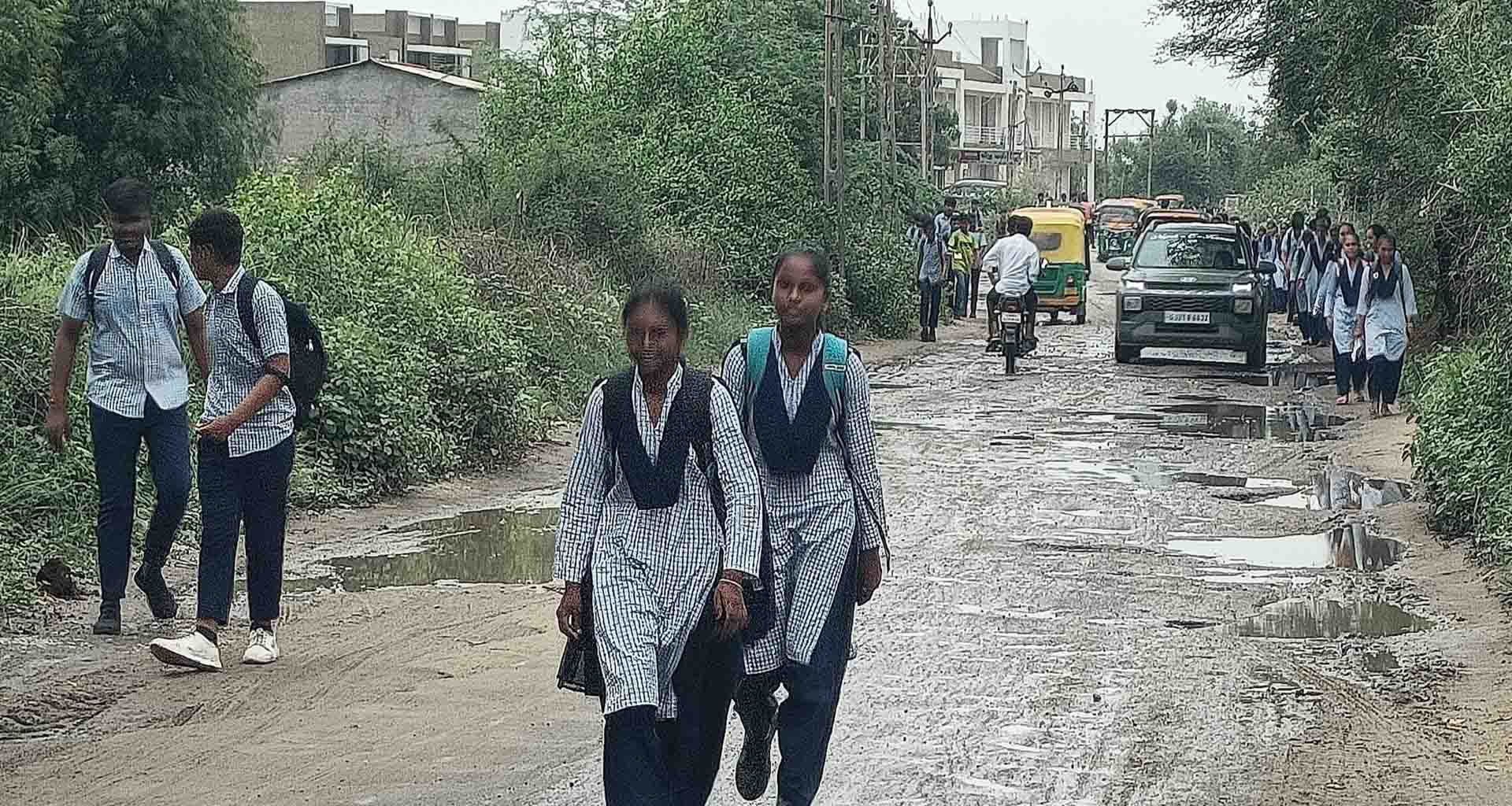 કેવી રીતે ભણવા જશે વિદ્યાર્થીઓ, સરકાર ક્યારે જાગશે; વડગામ તાલુકાના છાપી થી ફતેગઢ તરફ જતો એપ્રોચ રોડ છેલ્લા ચાર વર્ષ થી ખખડધજ બનતા વાહન ચાલકો સહિત સ્કૂલ માં અભ્યાસ માટે જતા છાત્રો ને ભારે મુશ્કેલી નો સામનો કરવો પડી રહ્યો છે જ્યારે આ રોડ બનાવવા અનેક રજૂઆતો કરવા છતાં વિકાસ નો ઢોલ પીટતી સરકાર ને રોડ બનાવવામાં કયો ગ્રહ નડી રહ્યો છે.તેવો લોકો સવાલ કરી રહ્યા છે.