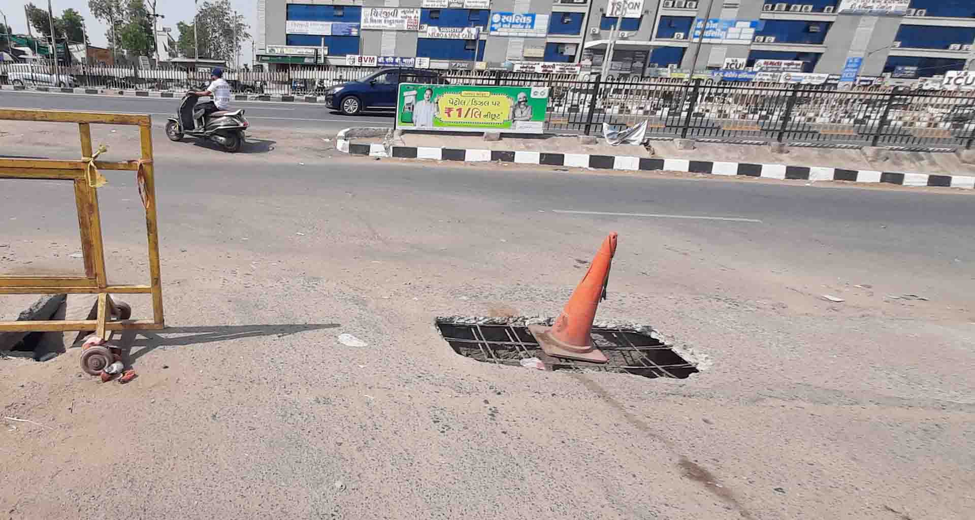 ત્યારે ડીસા રીલાયન્સ પેટ્રોલ પંપની બાજુમાં શિવનગર તરફ જવાના રસ્તા પર આવેલ ગટર લાઇન ઉપર અચાનક સ્લેબ તૂટી ગયો છે. જેથી અવર-જવર કરતાં રાહદારીઓ અને વાહન ચાલકો ભારે મુશ્કેલીમાં મૂકાયા છે. ત્યારે ડીસા નેશનલ હાઇવે ઓથોરિટી દ્વારા આ તાત્કાલિક ગટરનું સમારકામ કરાવે તો ઠીક છે નહીતર મોટી દુર્ઘટના સર્જાઇ શકે તેમ છે. આ રોડ પરથી મોટાપ્રમાણમાં ડીસા બજારમાંથી વાહનોની અવરજવર રહે છે રાહદારી રસ્તો પણ હોવાથી કોઈ મોટી દુઘટર્ના સર્જાઈ શકે છે. ત્યારે નેશનલ હાઇવે ઓથોરિટીના અધિકારીઓ તો મોટી આકસ્મિક ઘટના બને તેની રાહ જોઈને બેઠા હોય તેવું દેખાઈ રહ્યું છે. ત્યારે ડીસા ધારાસભ્ય દ્વારા તાત્કાલિક અસરથી નેશનલ હાઇવે ઓથોરિટીના અધિકારીઓ પાસે કામગીરી કરાવી તુટેલા ગટરનું સમારકામ કરાવી ખુલ્લા ગટર પર ઢાંકણા ઢાંકવામાં આવે તેવી લોકોની માંગ છે.ટેગ્સ:#Deesa#Road Safety#Local Governance#Public Complaints#Accident Prevention#Traffic Issues#Community Advocacy#Pedestrian Safety#Urban Infrastructure#Civic Responsibility#National Highway Authority#Emergency Repairs#Infrastructure Negligence#Sewer Slab Break#Motorist Concerns