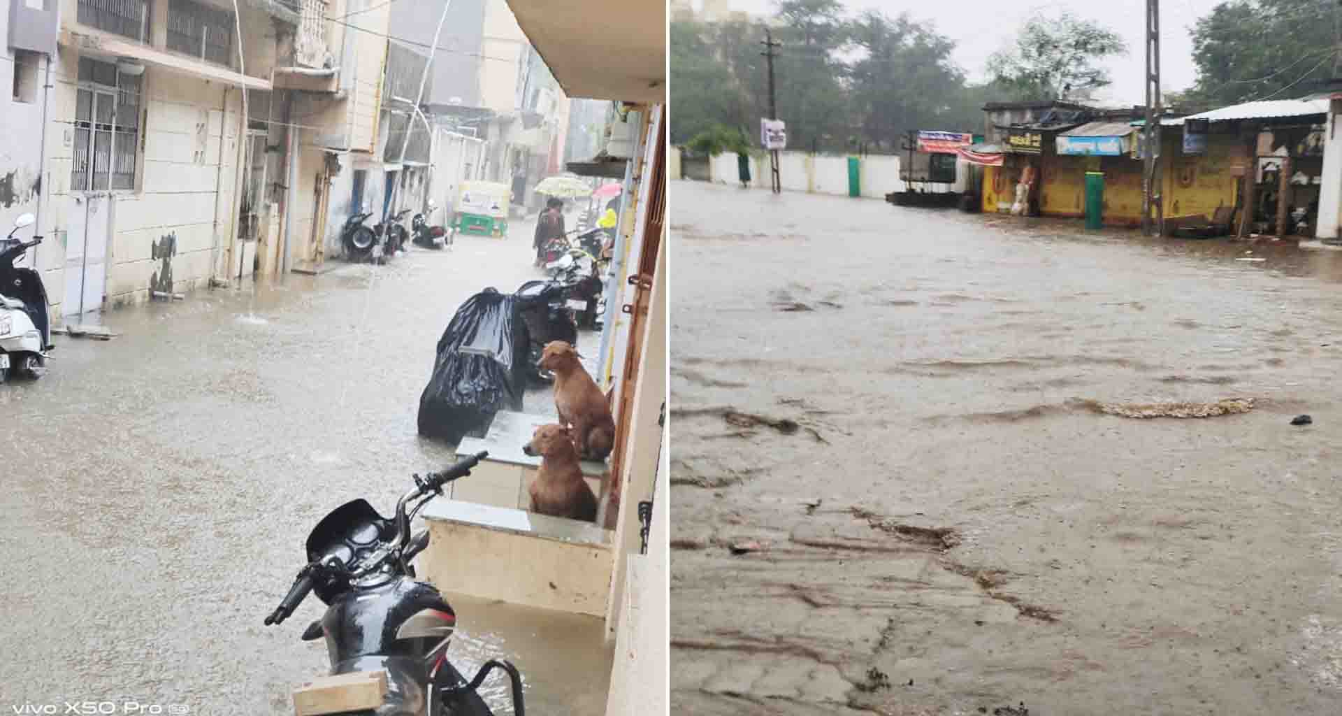 ઇકબાલગઢમાં ધોધમાર વરસાદ; વરસાદને પગલે ખેતરોમાં પાણી ભરાયા છે, ખેતરોમાં કરેલી વાવેતરને નુકસાનની ભીતિ સેવાઈ રહી છે, ભારે વરસાદથી રસ્તાઓ પર પાણી ફરી વળ્યા છે, ગરનાળામાં 15 ફૂટ જેટલું પાણી ભરાતા બંધ કરાયું છે. ડીસામાં વરસાદની તોફાની બેટિંગ ચાલી રહી છે, અનેક વિસ્તારોમાં વરસાદી પાણી ભરાયા છે અને માળીવાસ, રિજમેન્ટ વિસ્તારમાં પાણી ભરાયા છે, વરસાદી પાણી ઘરોમાં ઘૂસતા મોટું નુકસાન થયું છે, ખેડૂતો, વિદ્યાર્થીઓ અને વેપારીઓને હાલાકી પડી રહી છે, પાણીના નિકાલની વ્યવસ્થા કરવા સ્થાનિકો તંત્ર સાથે વાતાઘાટો કરી રહ્યા છે.