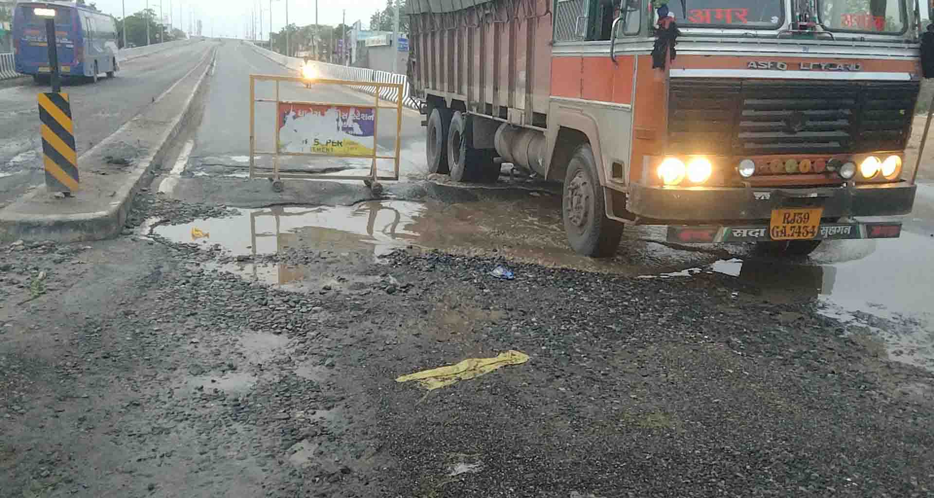ધાનેરા નગરપાલિકા વિસ્તારમાં આવેલ રેલવે પૂલ પરથી ઉતરતા જ માર્ગ પર મસમોટા ખાડાઓ પડી ગયા છે. જ્યાં સામાન્ય બે મિલીમીટર વરસાદ આવે તો પણ ખાડા પડી જાય છે, ત્યારે હાઈવે ઓથોરિટી નામની થાગડ થીગડ કરે છે. પરંતુ કાયમી ઉકેલ આવે એવું કંઈ જ કરવામાં આવતું નથી. જેના કારણે માર્ગ પરથી પસાર થતાં વાહનચાલકોના વાહનોને ભારે નુકશાન થઈ રહ્યું છે. આ સિવાય આગામી સમયમાં આ સમસ્યાના કારણે કોઈ મોટી દુર્ઘટના સર્જાશે તો તેના માટે જવાબદાર કોણ ? તેવા ગંભીર સવાલો પણ ઉઠવા પામ્યા છે.